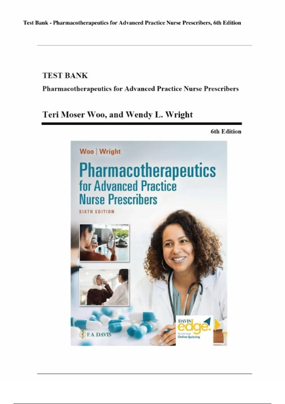 Pharmacotherapeutics for Advanced Practice Nurse Prescribers, 6th Edition – Teri Moser Woo & Wendy L. Wright – Complete Test Bank