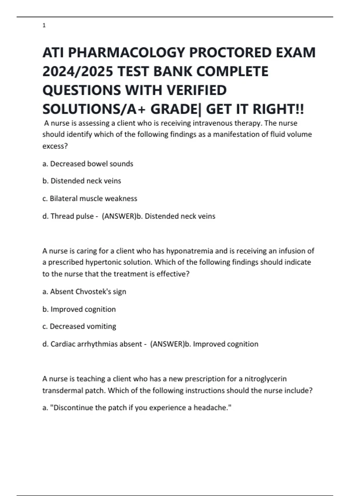 d. Increased blood pressure - (ANSWER)d. Increased blood pressure