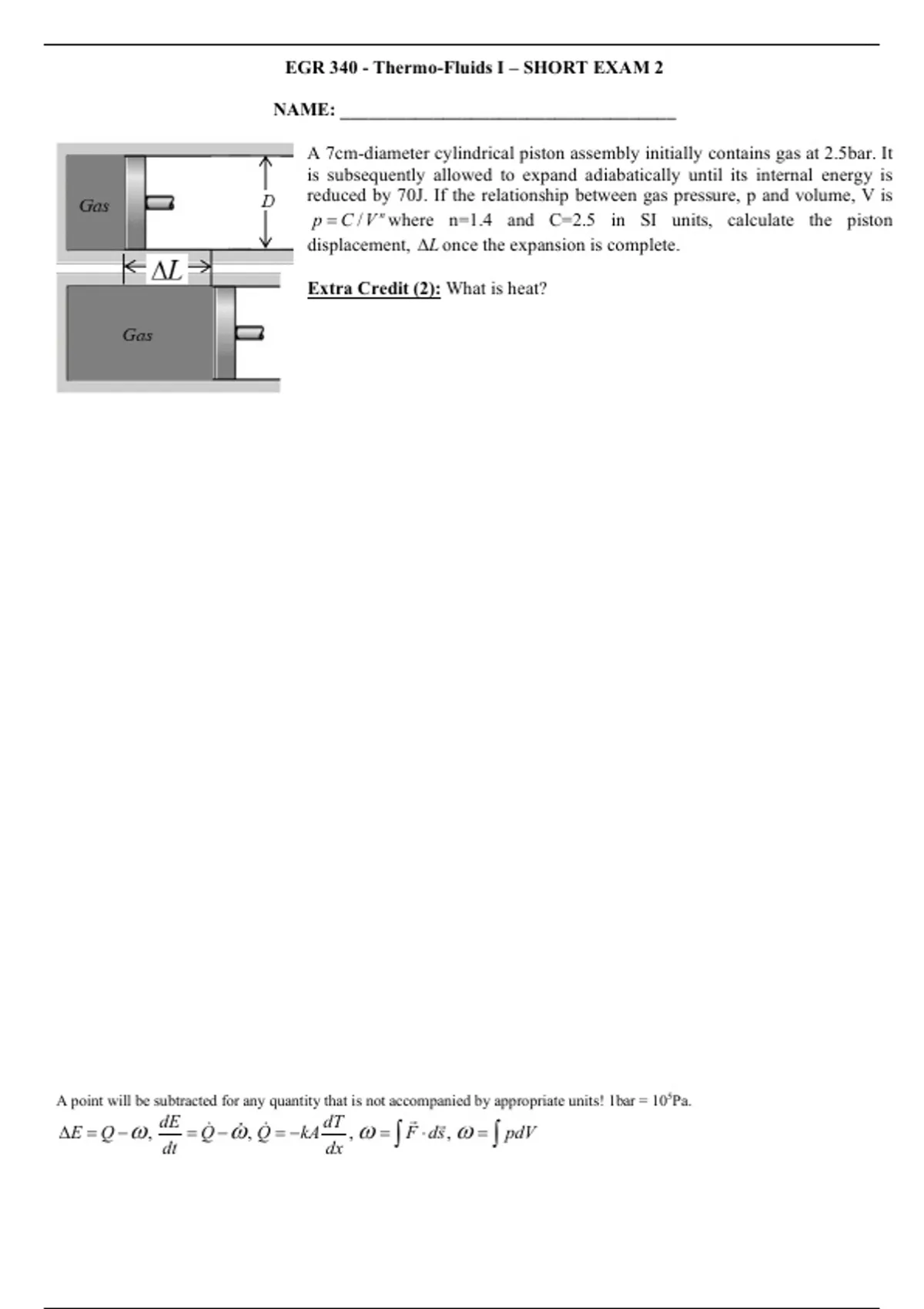 A point will be subtracted for any quantity that is not accompanied by appropriate units! 1bar = 105Pa.