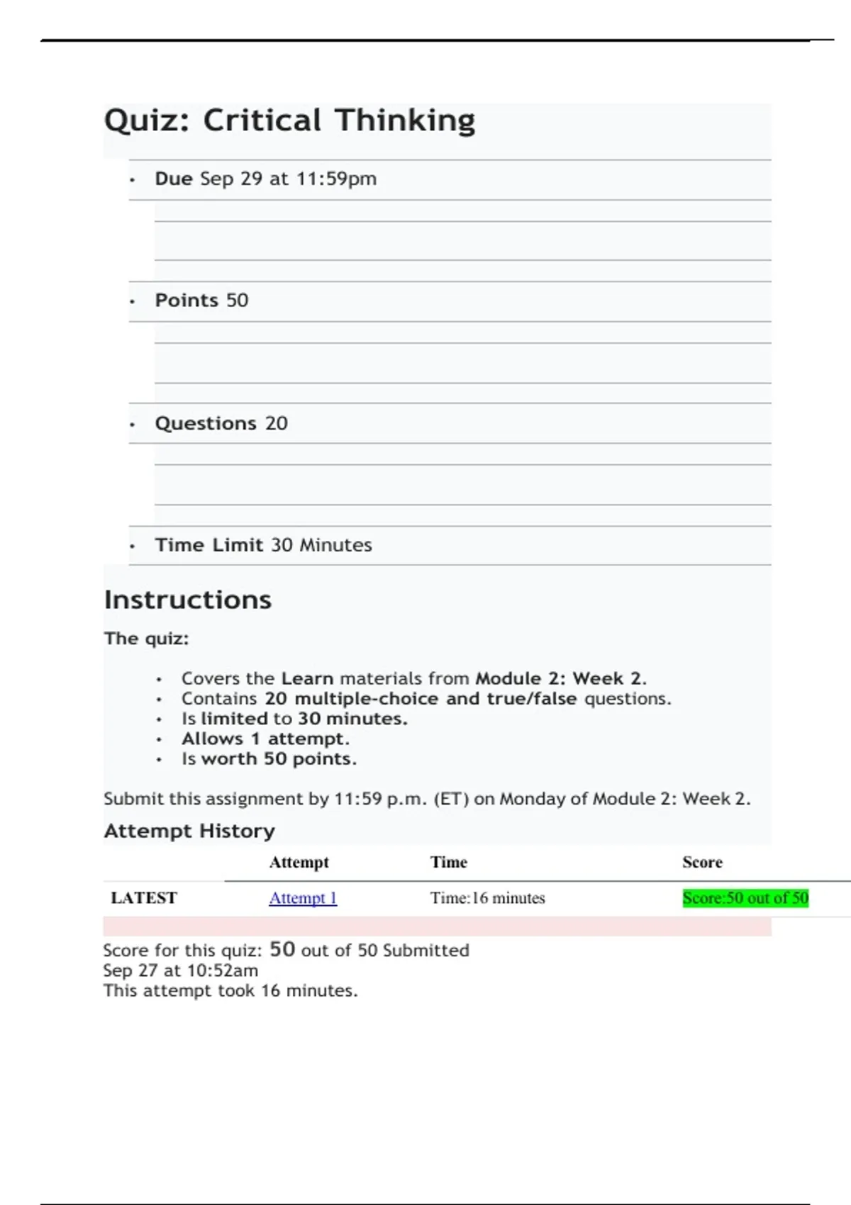 Score for this quiz: 50 out of 50 Submitted