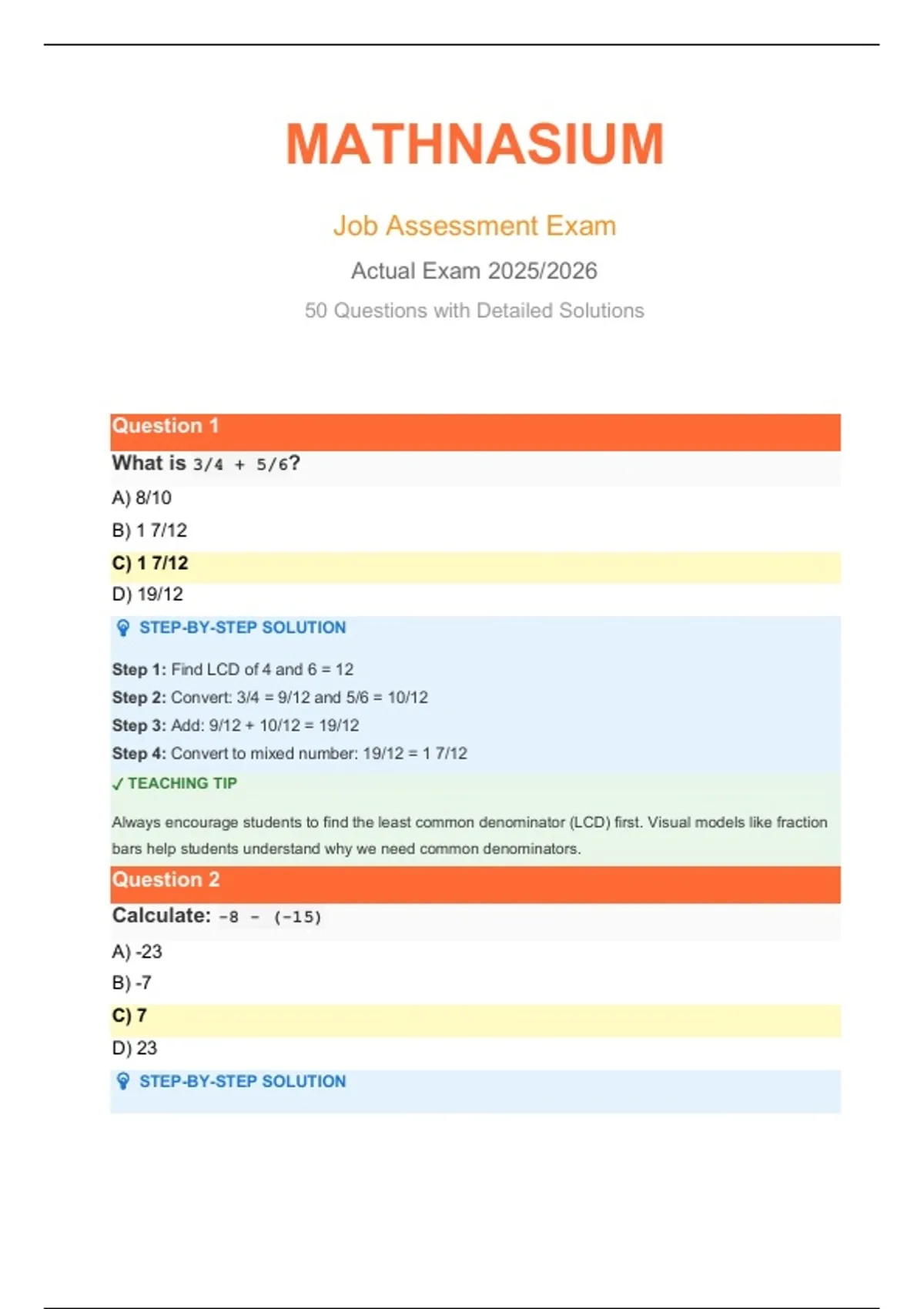 Questions 1-10 | Basic Operations & Fractions