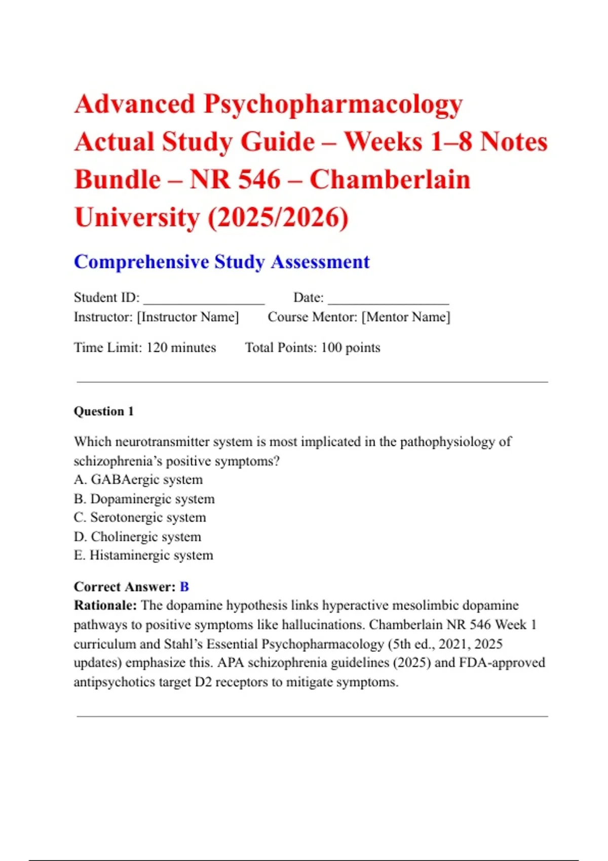 pathways to positive symptoms like hallucinations. Chamberlain NR 546 Week 1