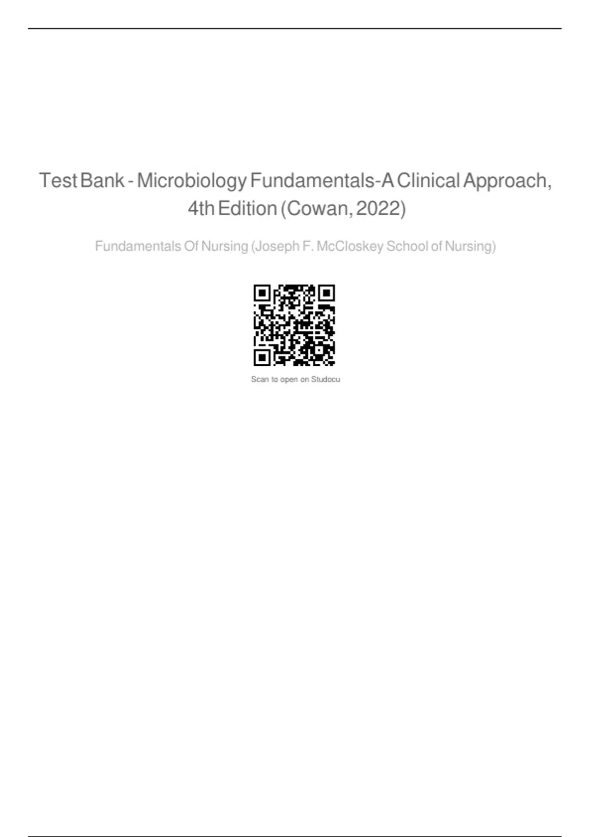 Test |Bank |- |Microbiology |Fundamentals-A |Clinical |Approach, |4th |Edition |(Cowan, |2022)
