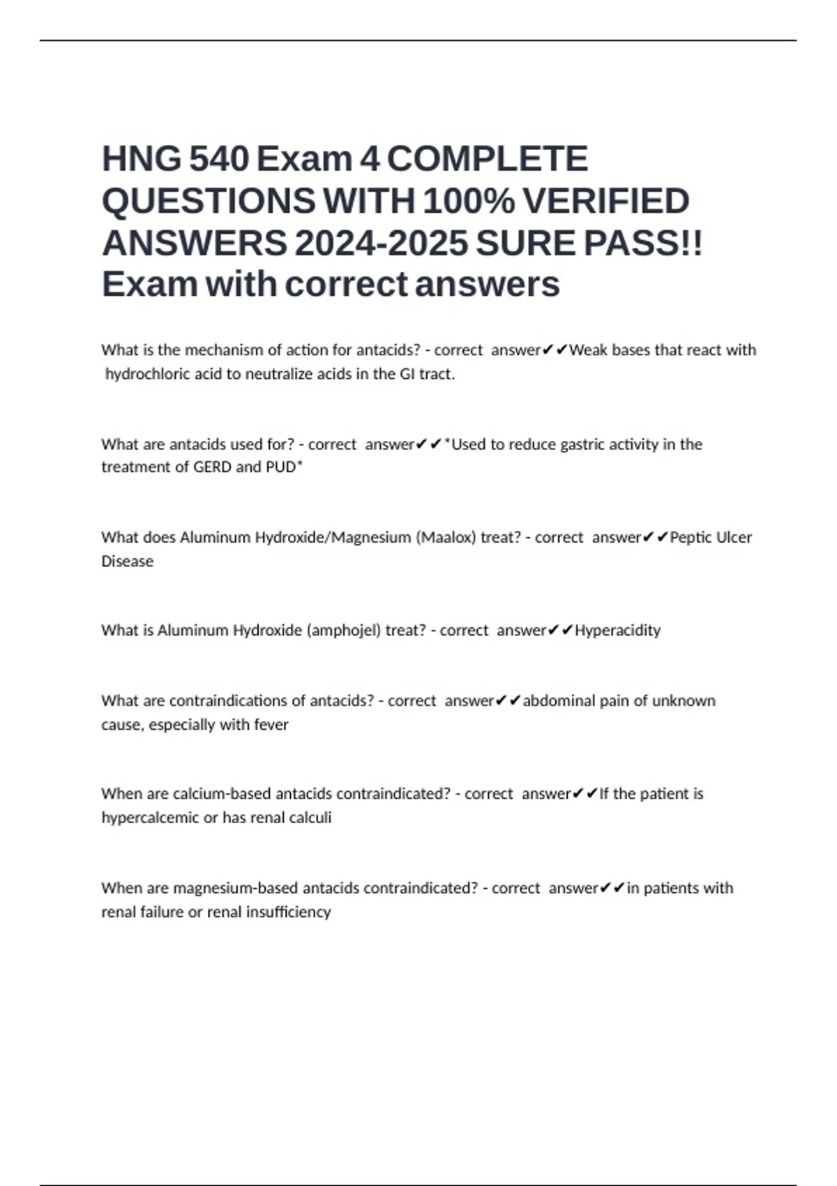 What are antacids used for? - correct answer✔✔*Used to reduce gastric activity in the