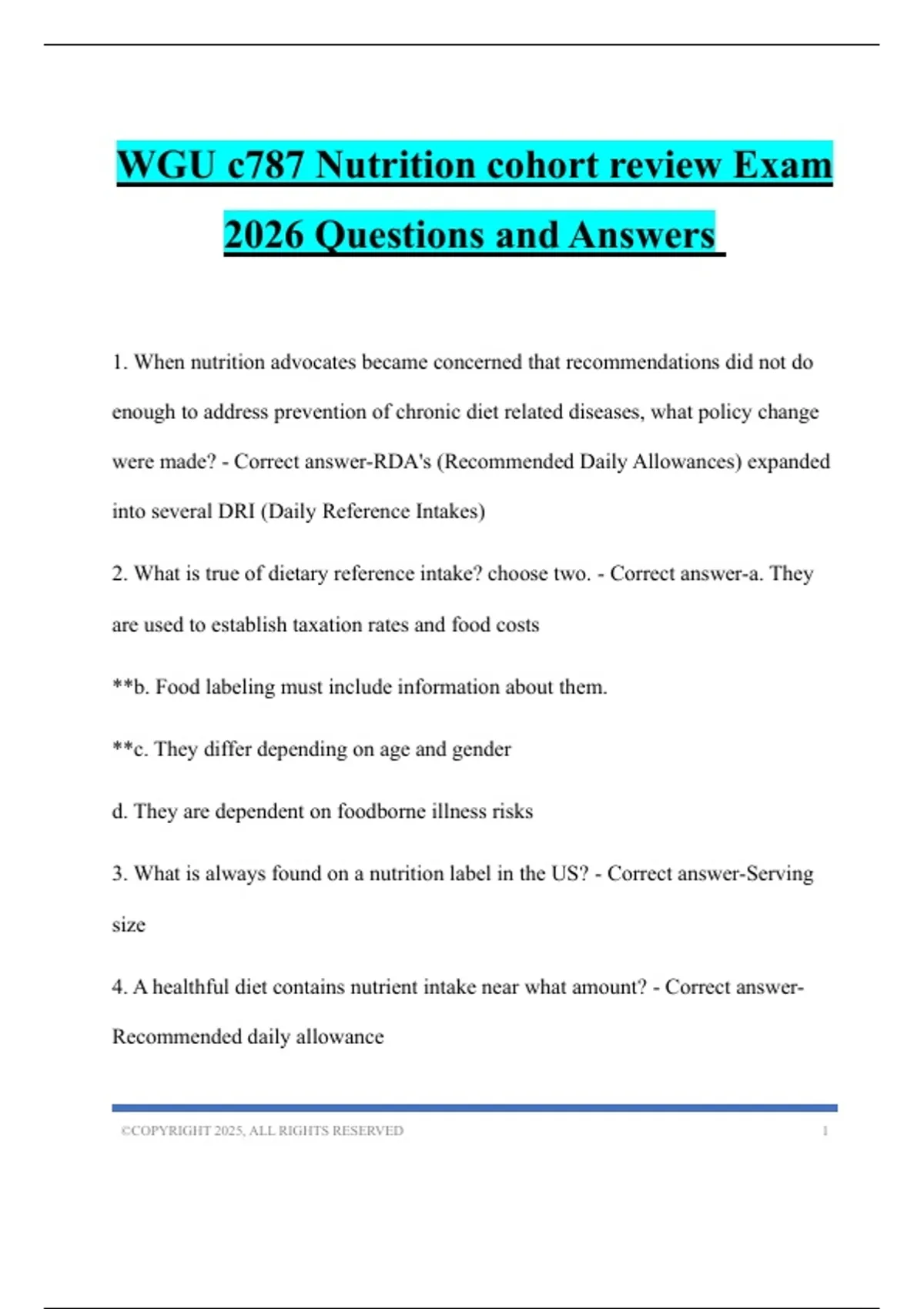 WGU c787 Nutrition cohort review Exam