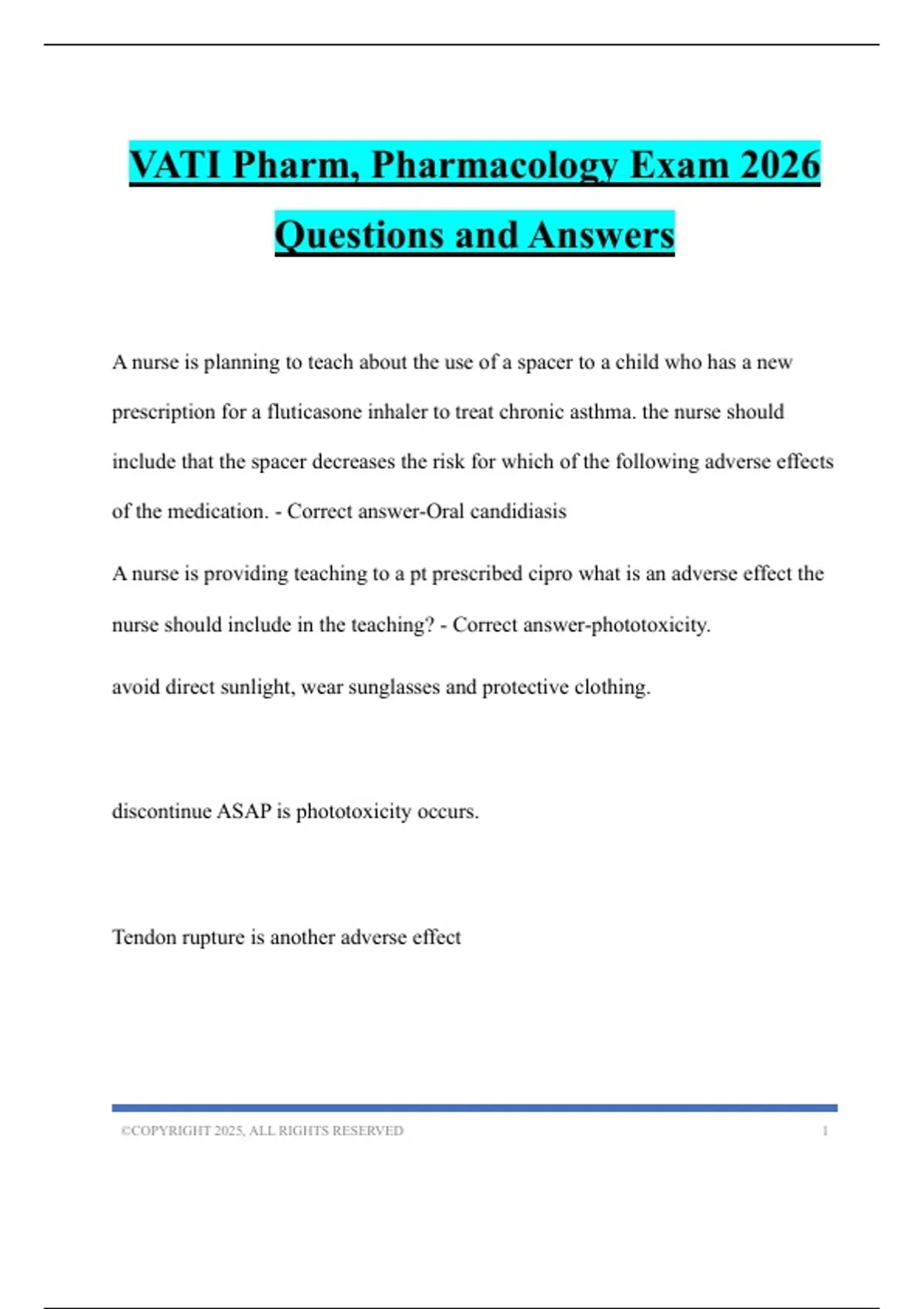 VATI Pharm, Pharmacology Exam 2026