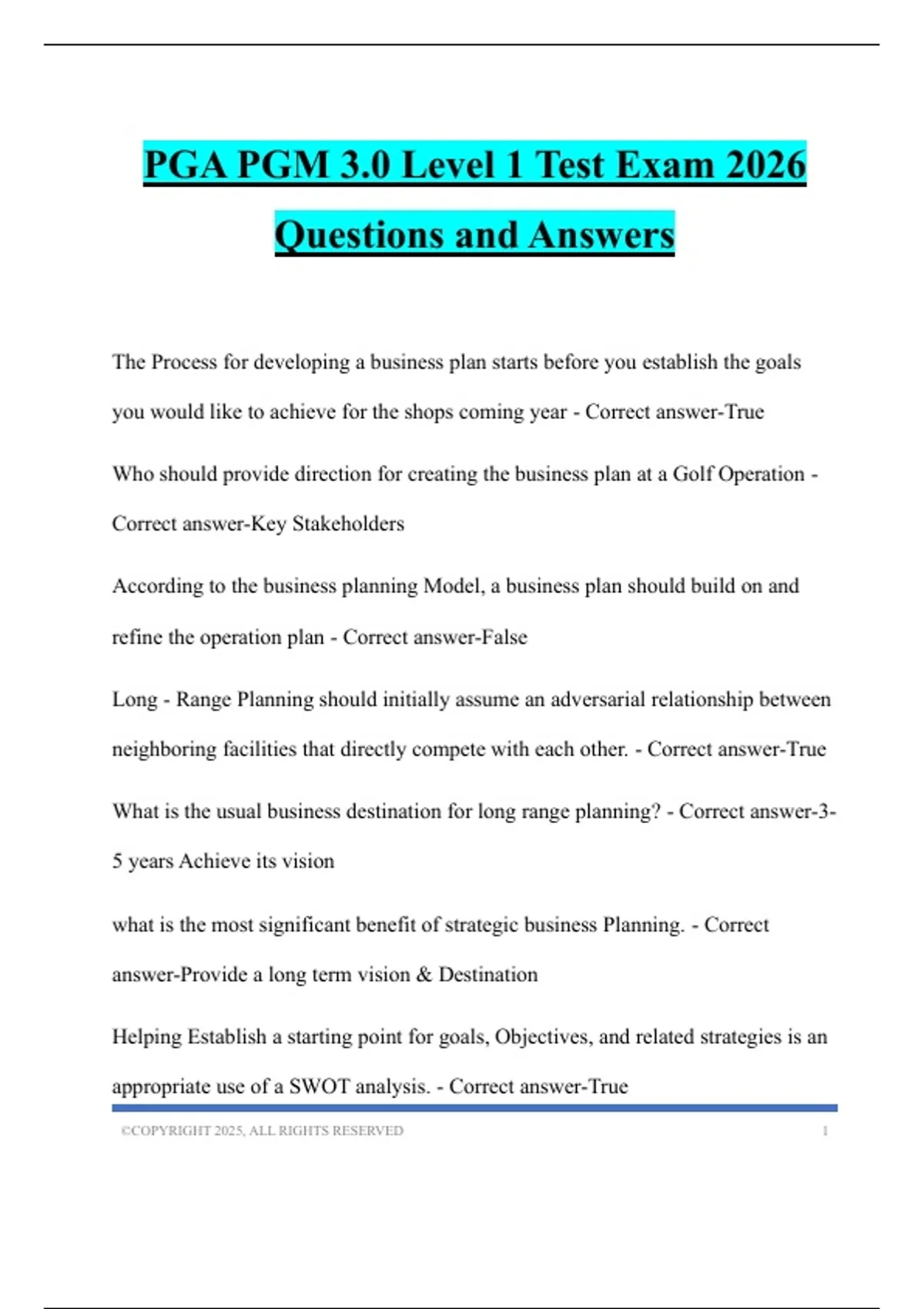 PGA PGM 3.0 Level 1 Test Exam 2026 Questions and Answers