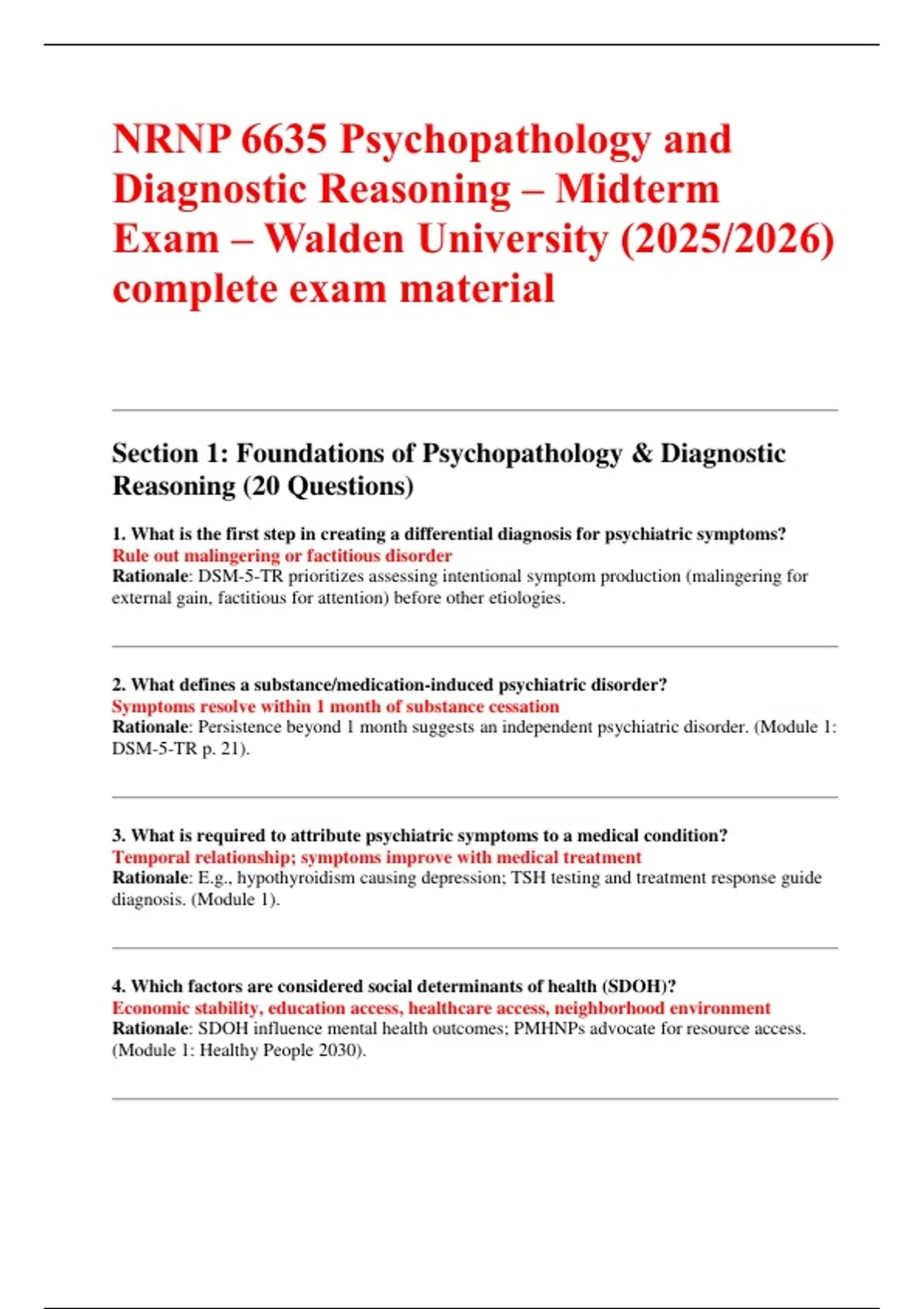 Rationale: Provides a snapshot of mental state; informs differential diagnosis. (Module 1).