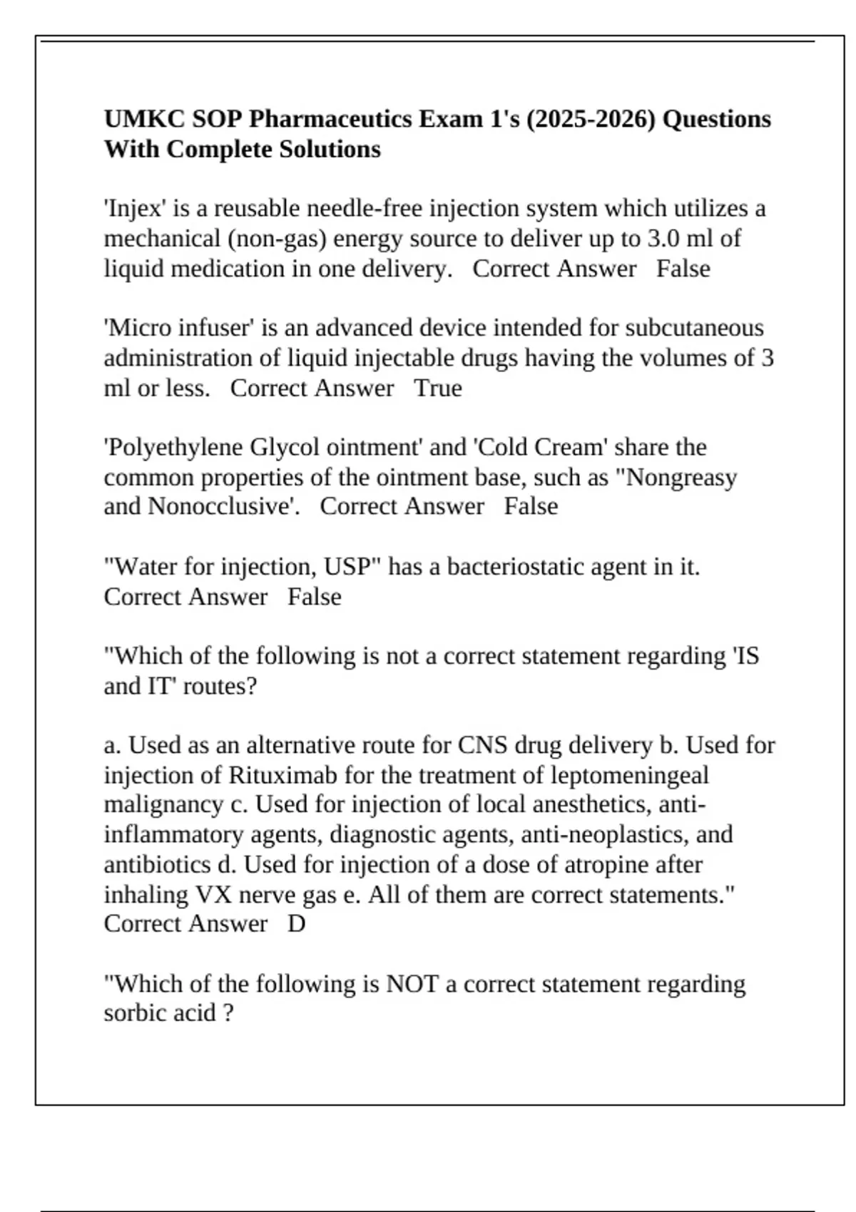 UMKC SOP Pharmaceutics Exam 1's () Questions With Complete Solutions