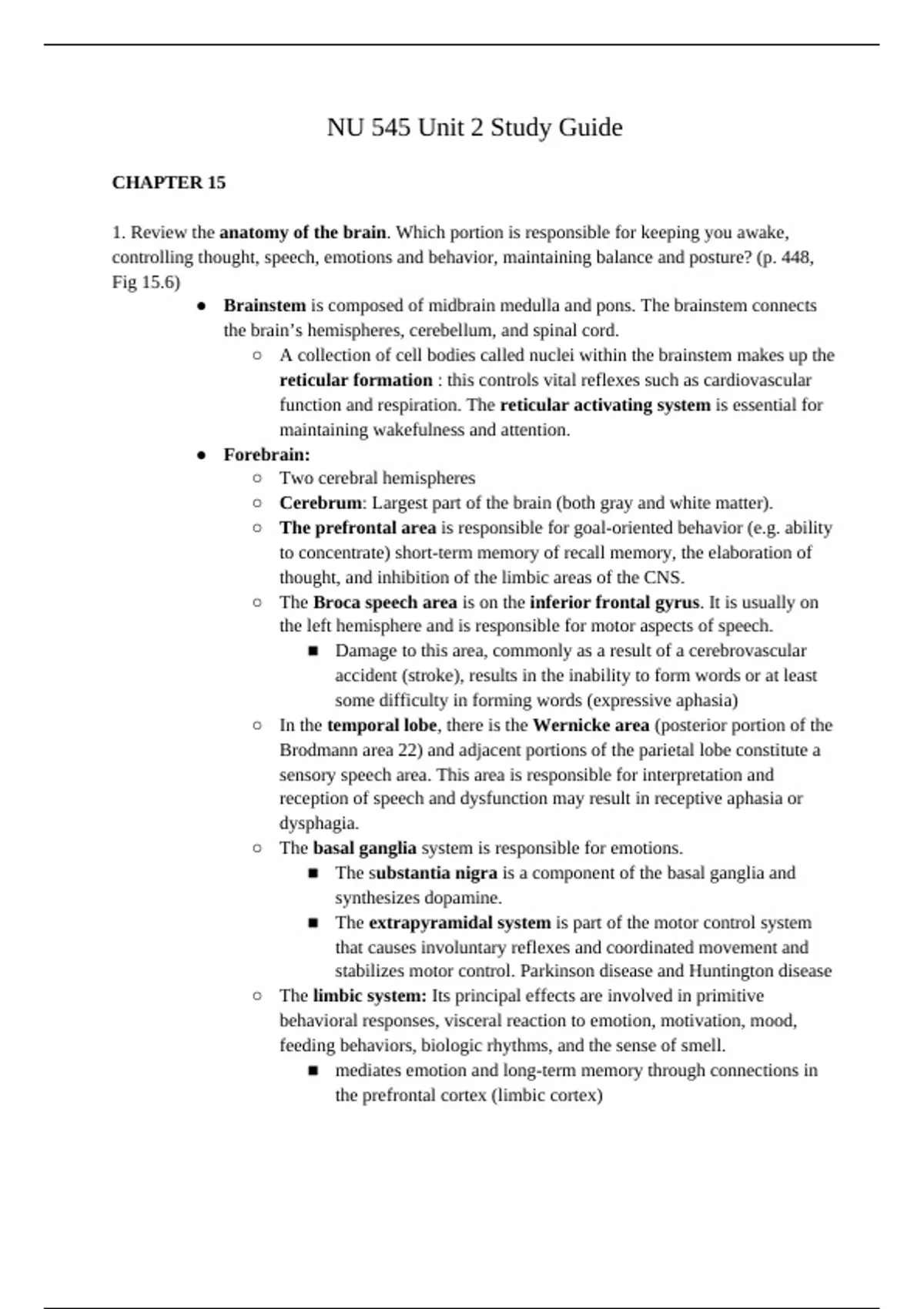NU 545 Unit 2 Study Guide | University of South Alabama