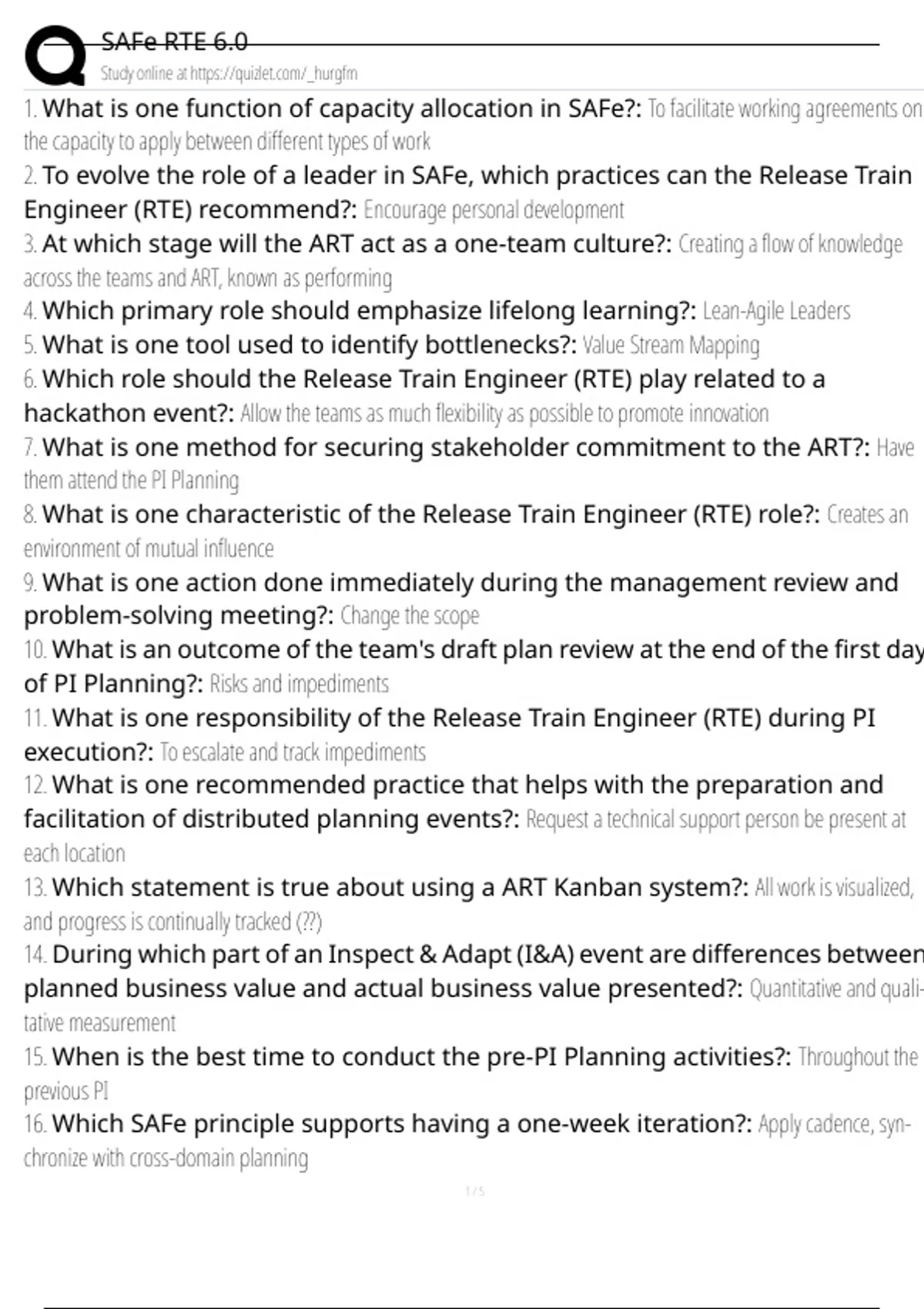SAFe RTE 6.0 Exam Questions and Answers 100% Pass |Already Graded A+| Verified and Updated |Actual 2025/2026 Cheat Sheet