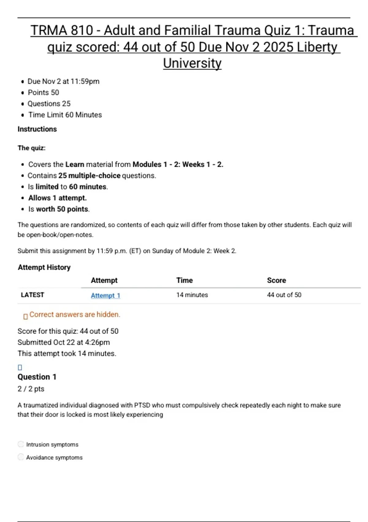 quiz scored: 44 out of 50 Due Nov 2 2025 Liberty
