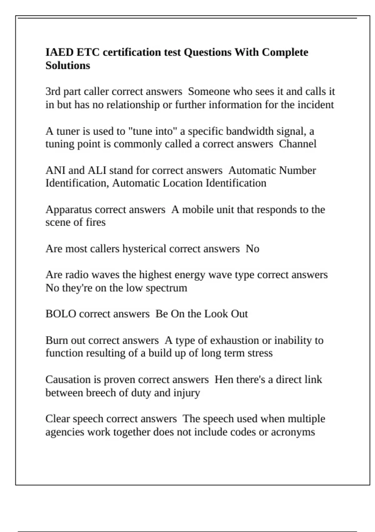 IAED ETC certification test Questions With Complete Solutions