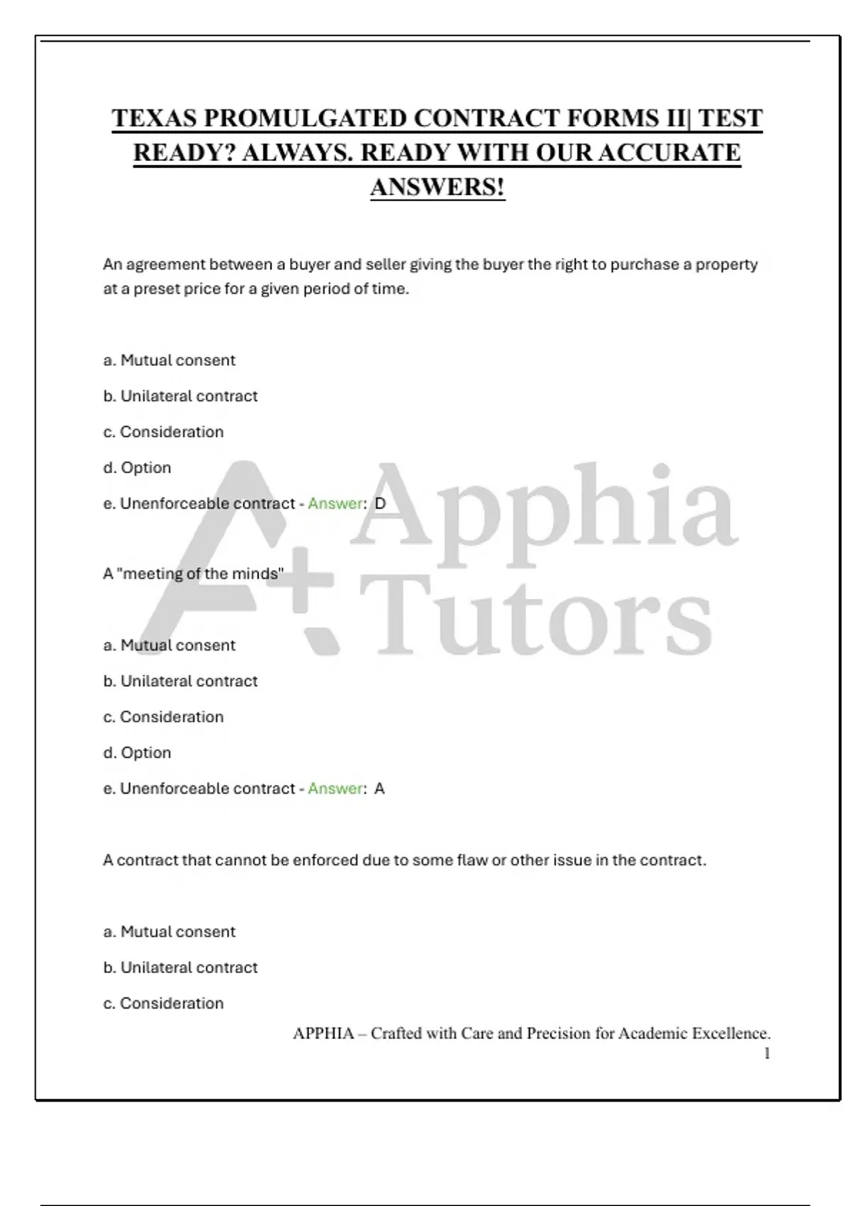 An agreement between a buyer and seller giving the buyer the right to purchase a property