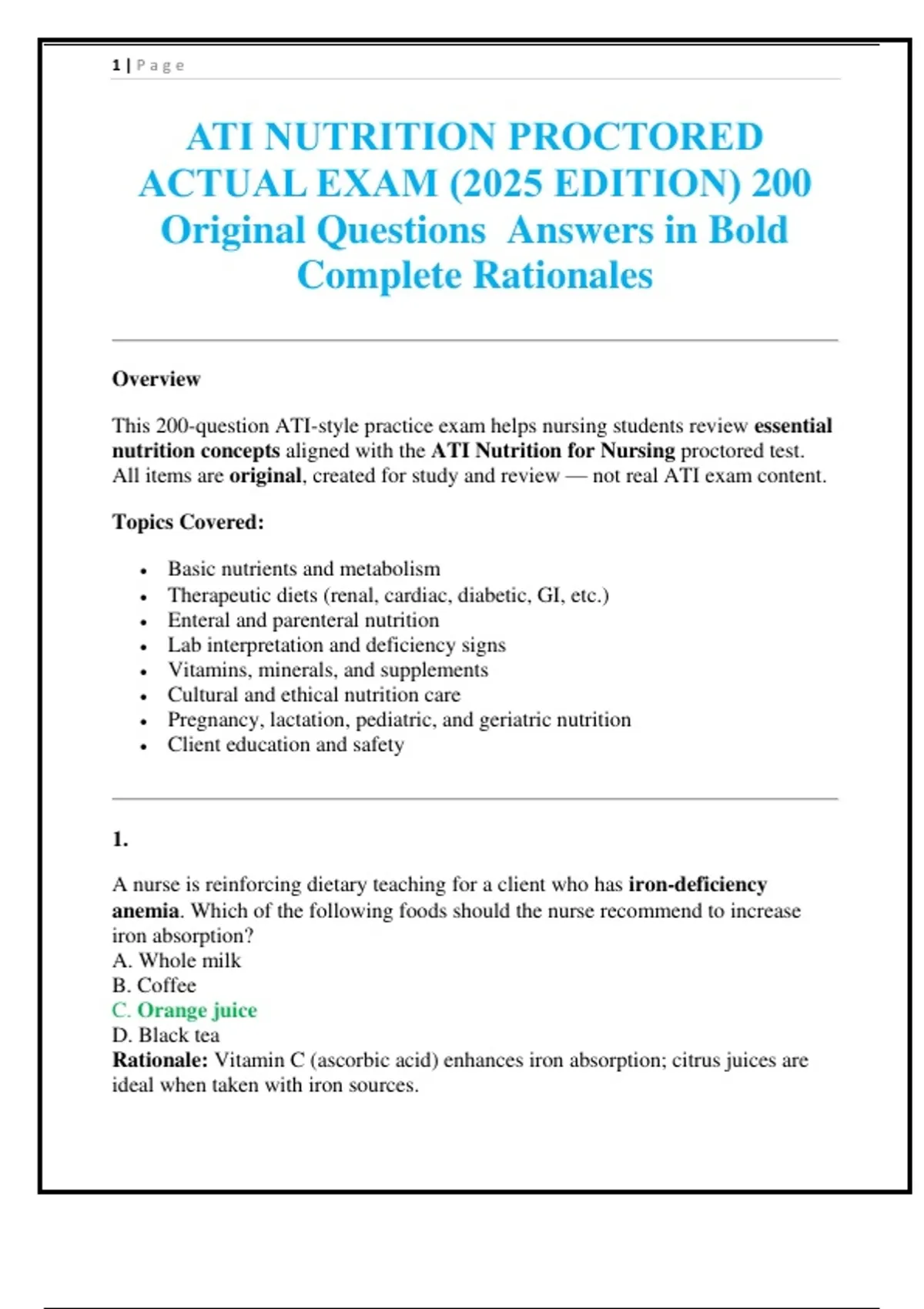 ATI NUTRITION PROCTORED