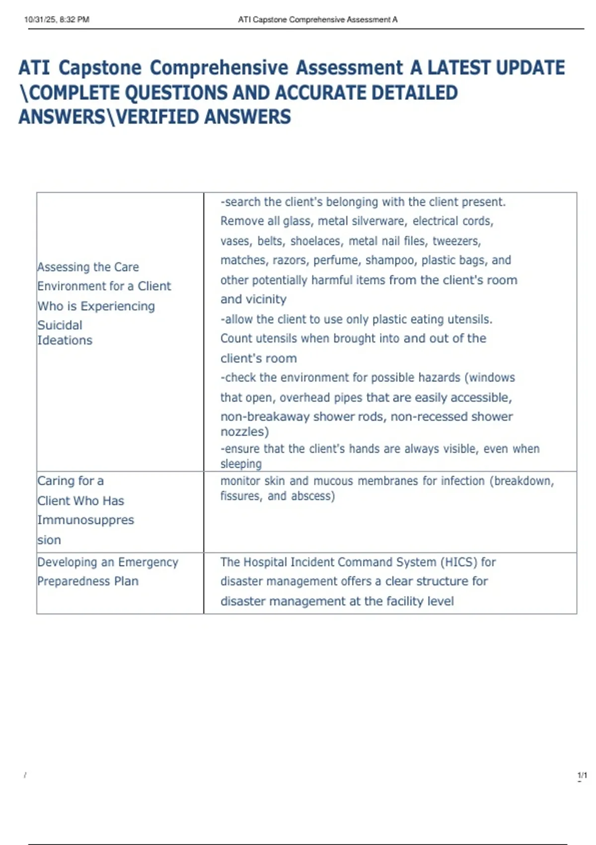 ATI Capstone Comprehensive Assessment A LATEST UPDATE