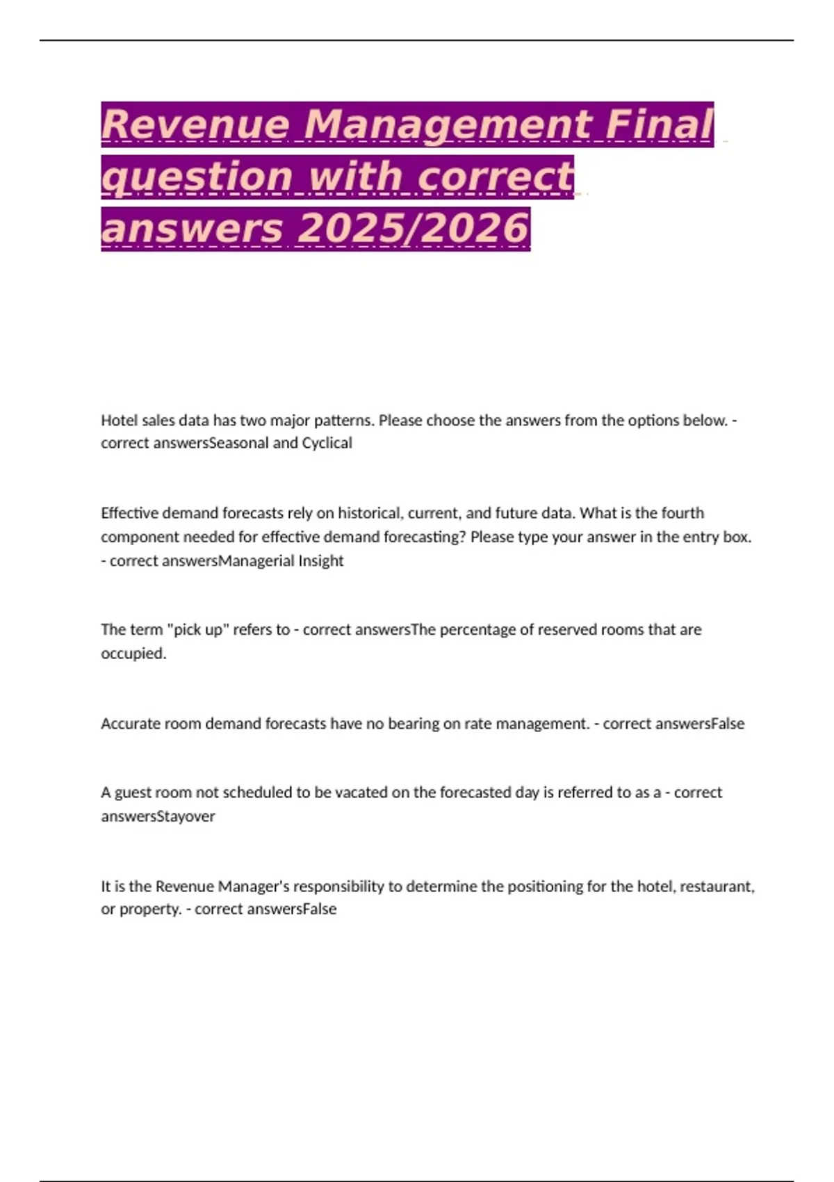 important consideration for a revenue manager? - correct answersThe worth of the customer