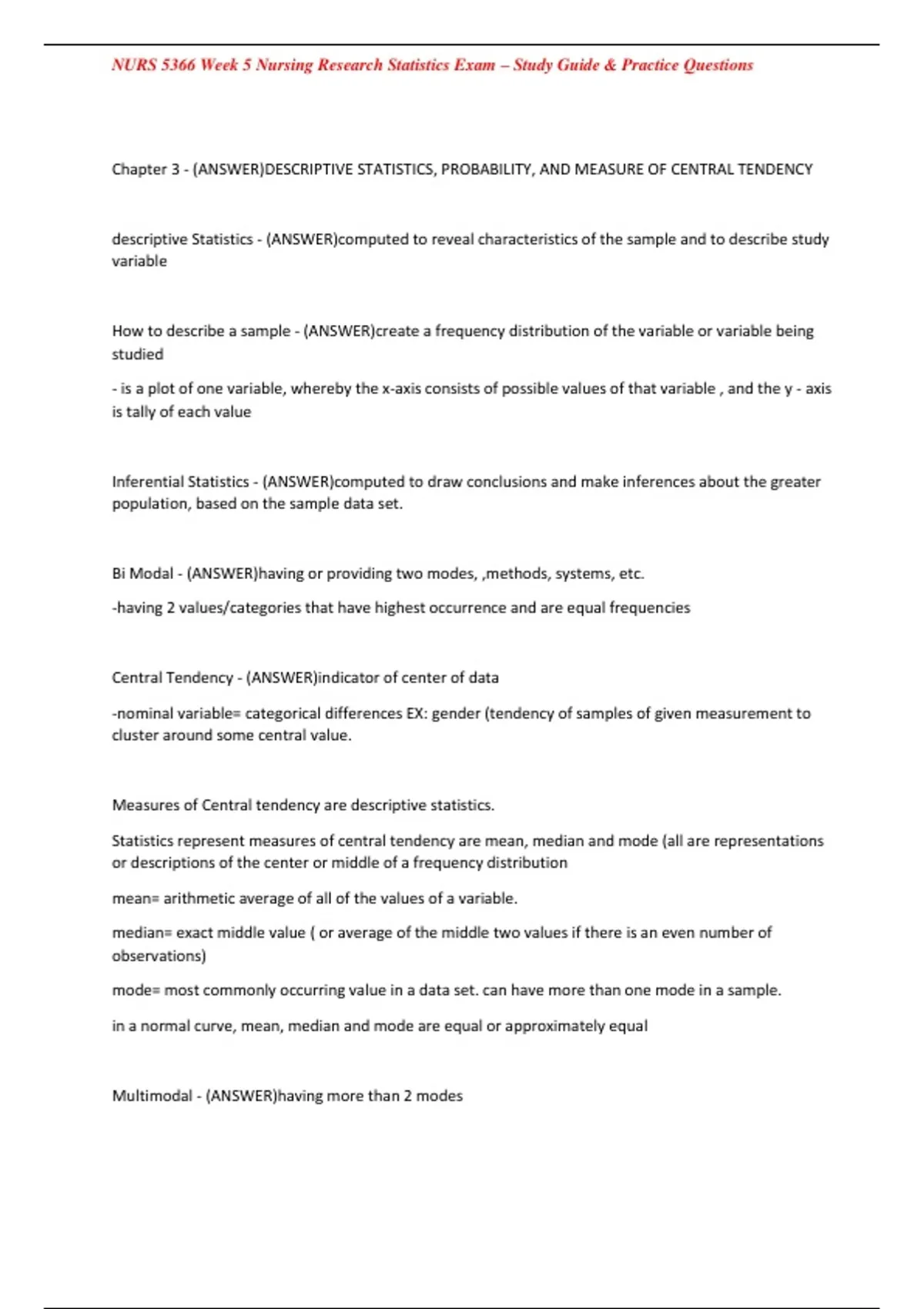 ,NURS 5366 Week 5 Nursing Research Statistics Exam – Study Guide & Practice Questions