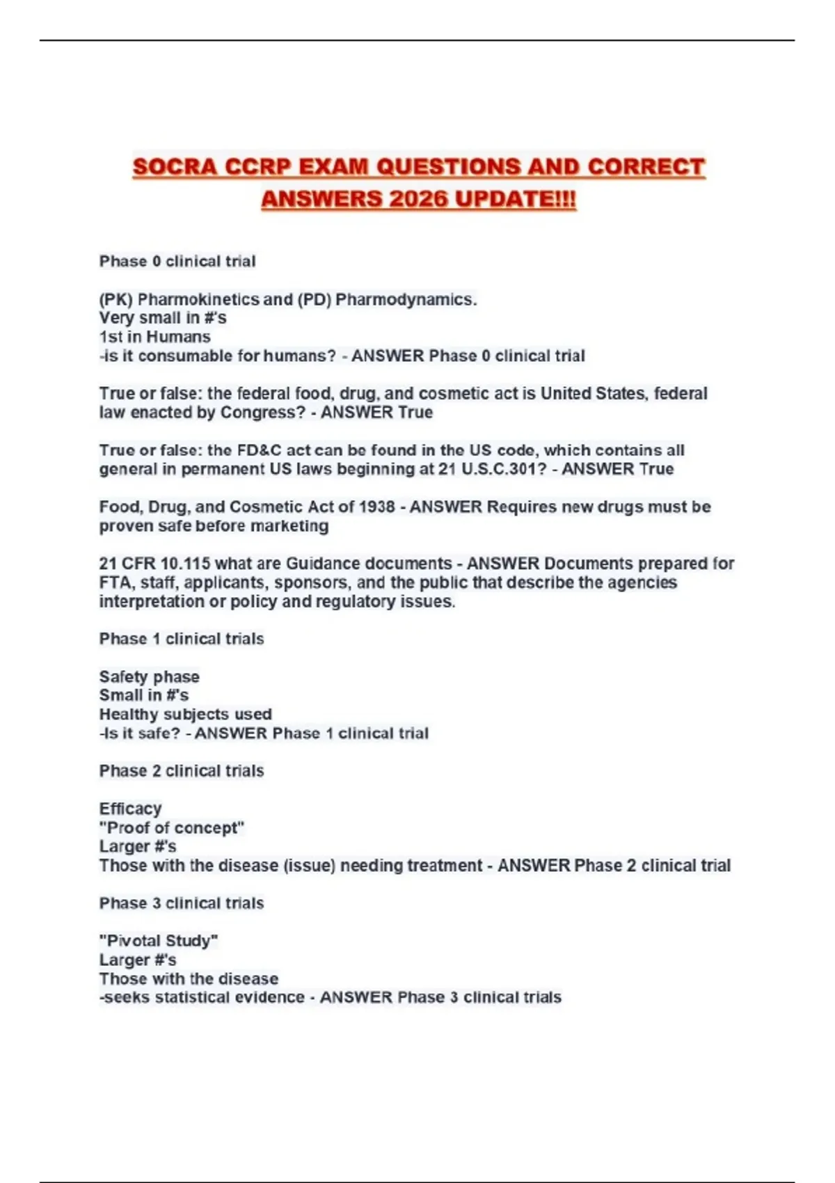SOCRA CCRP EXAM QUESTIONS AND CORRECT ANSWERS 2026 UPDATE!!!...
