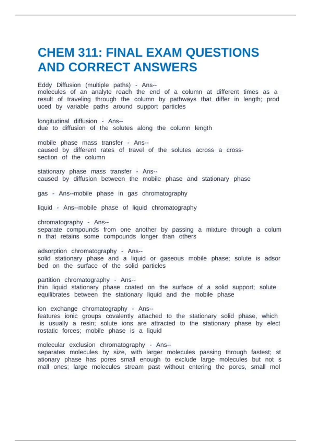 CHEM 311: FINAL EXAM QUESTIONS AND CORRECT ANSWERS
