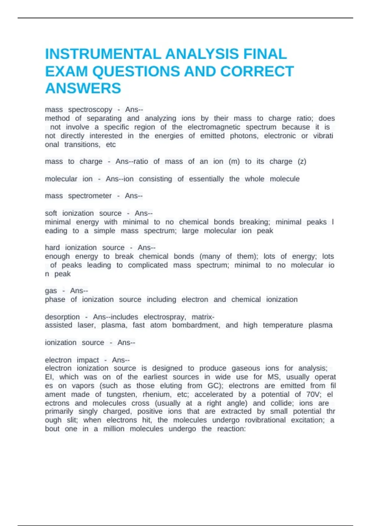INSTRUMENTAL ANALYSIS FINAL EXAM QUESTIONS AND CORRECT ANSWERS