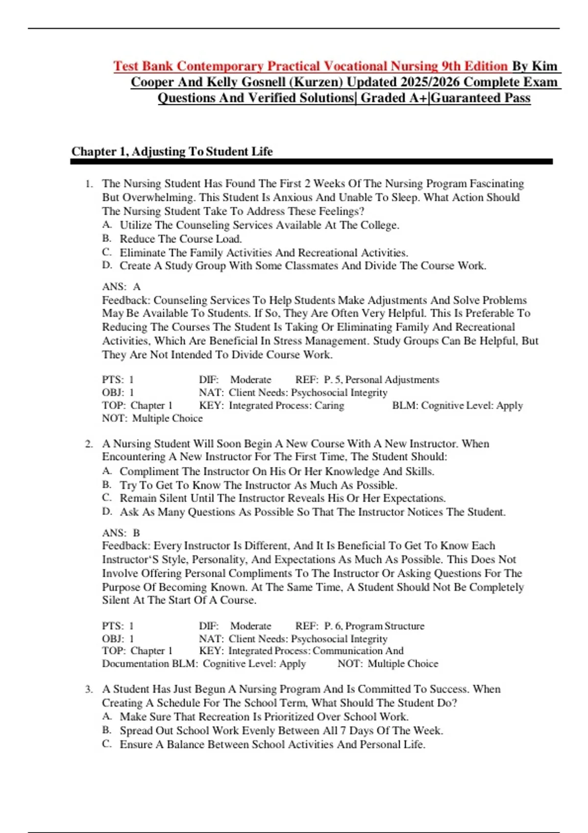 2. A Nursing Student Will Soon Begin A New Course With A New Instructor. When