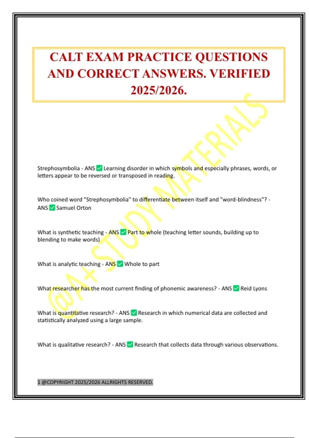 CALT EXAM PRACTICE QUESTIONS