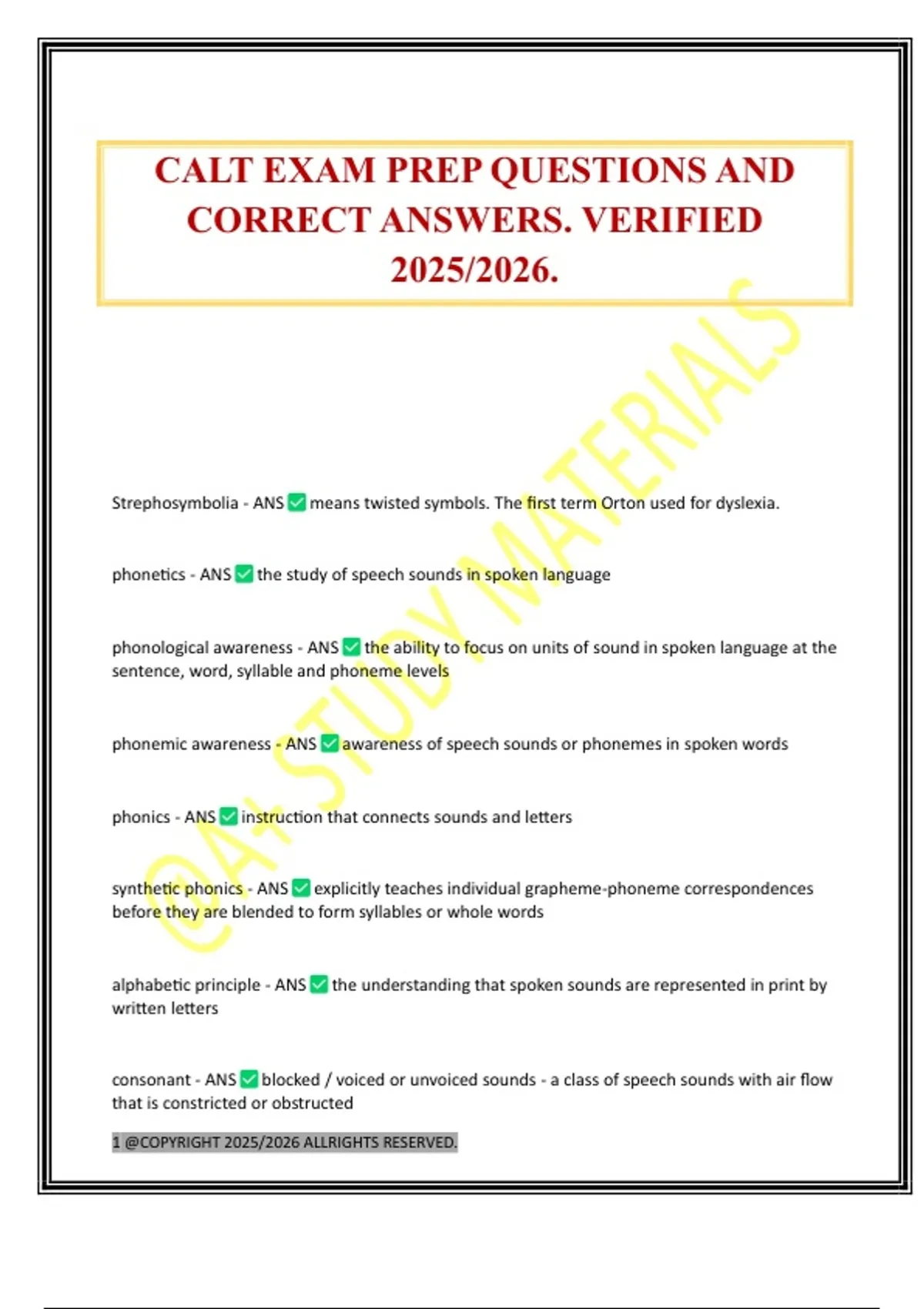 CALT EXAM PREP QUESTIONS AND CORRECT ANSWERS. VERIFIED 2025/2026.