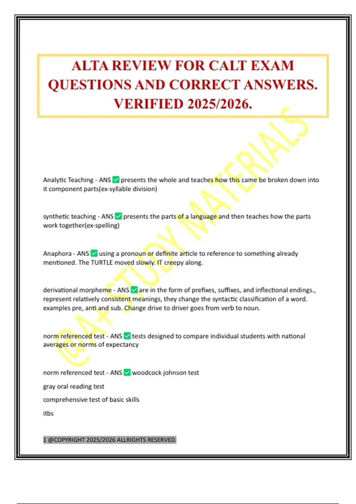 ALTA REVIEW FOR CALT EXAM
