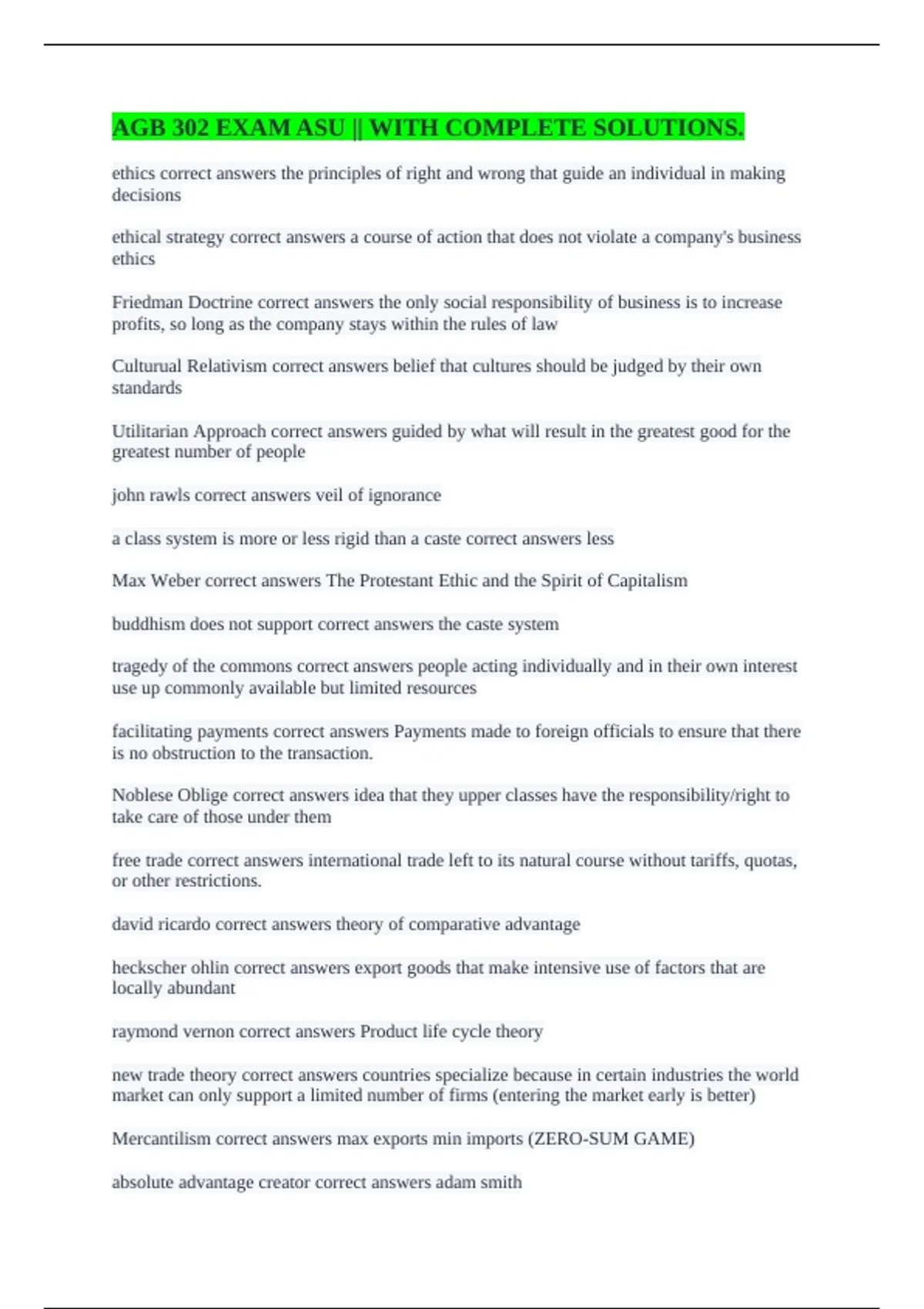 AGB 302 EXAM ASU || WITH COMPLETE SOLUTIONS.