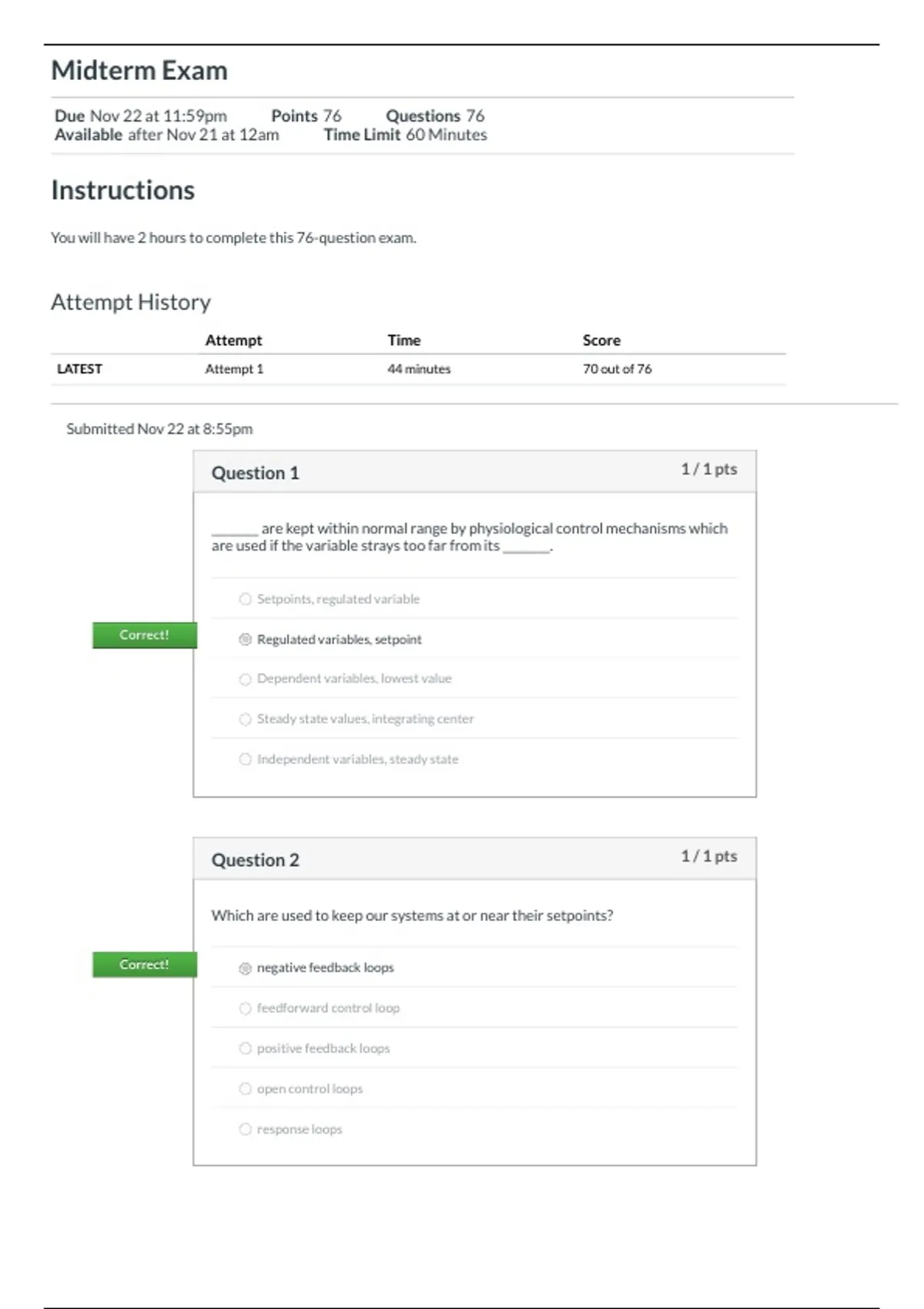 LATEST Attempt 1 44 minutes 70 out of 76