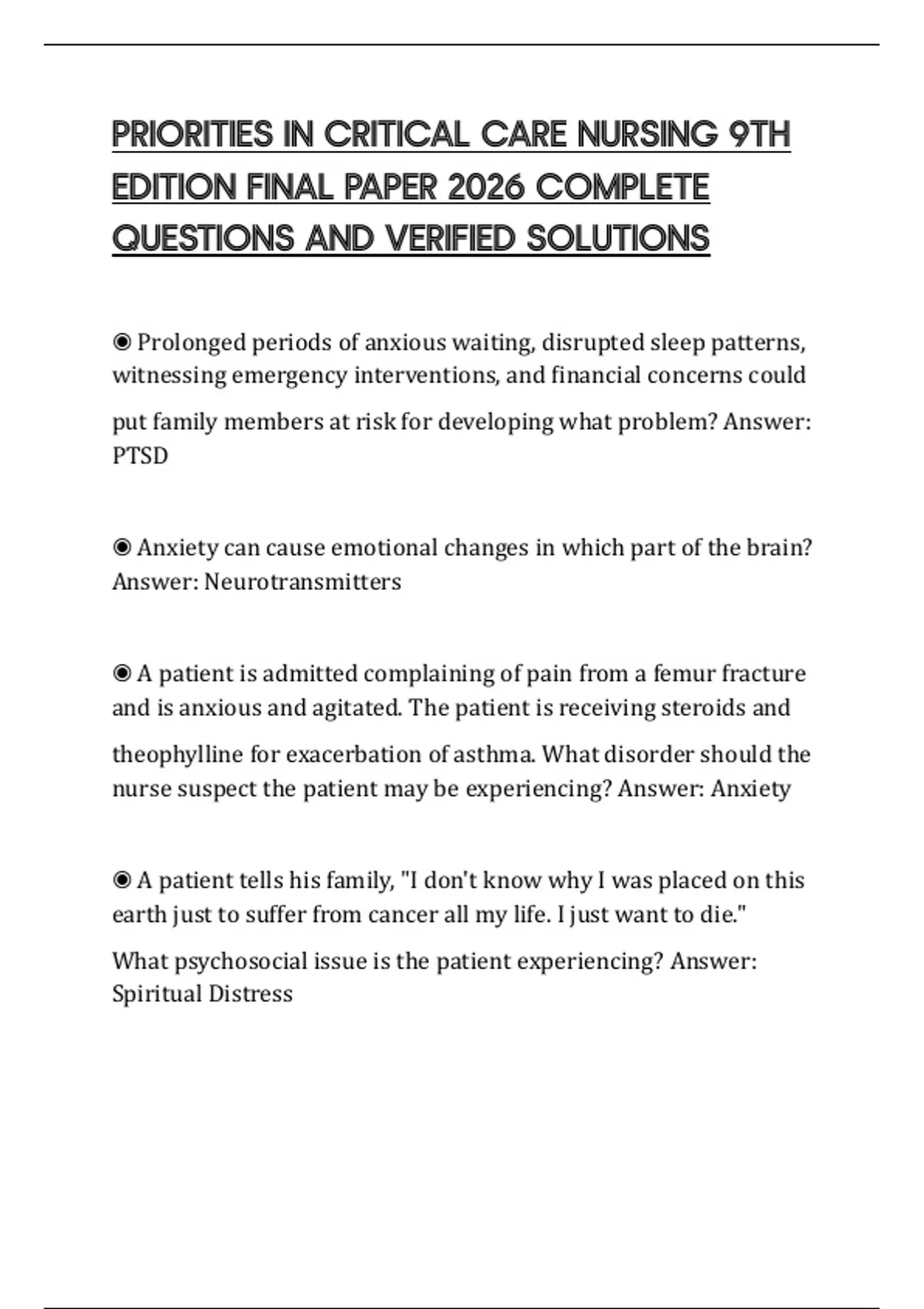 nurse suspect the patient may be experiencing? Answer: Anxiety