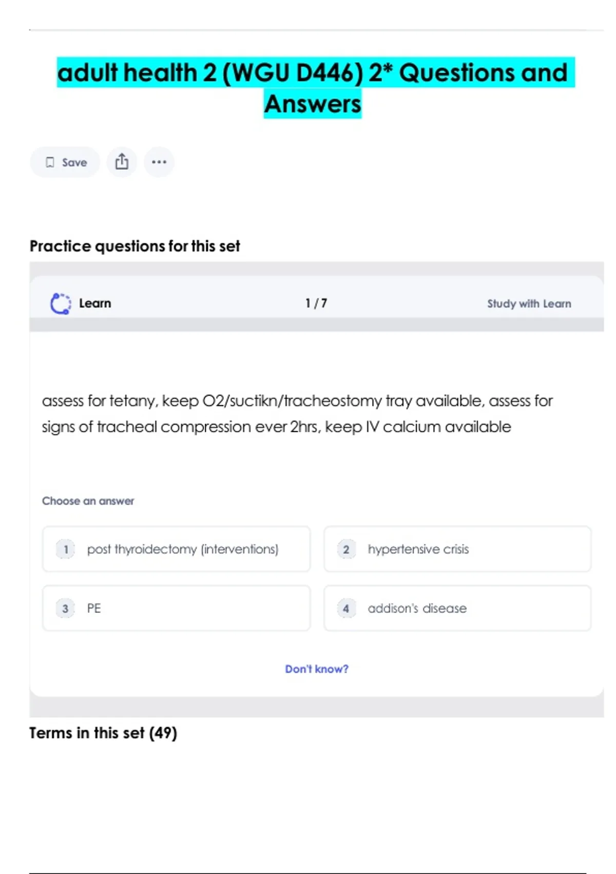 ALL STUDY GUIDES, TEST BANKS, STUDY NOTES, EXAMS AND OTHER RELIABLE STUDY MATERIALS AVAILABLE. GUARANTEED SUCCESS. WELCOME