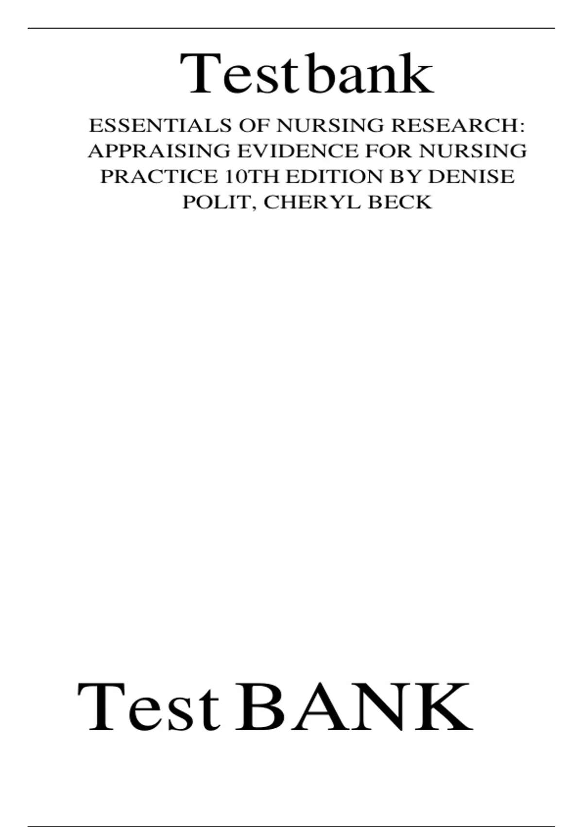 ,Test Bank For Essentials Of Nursing Research: Appraising Evidence For