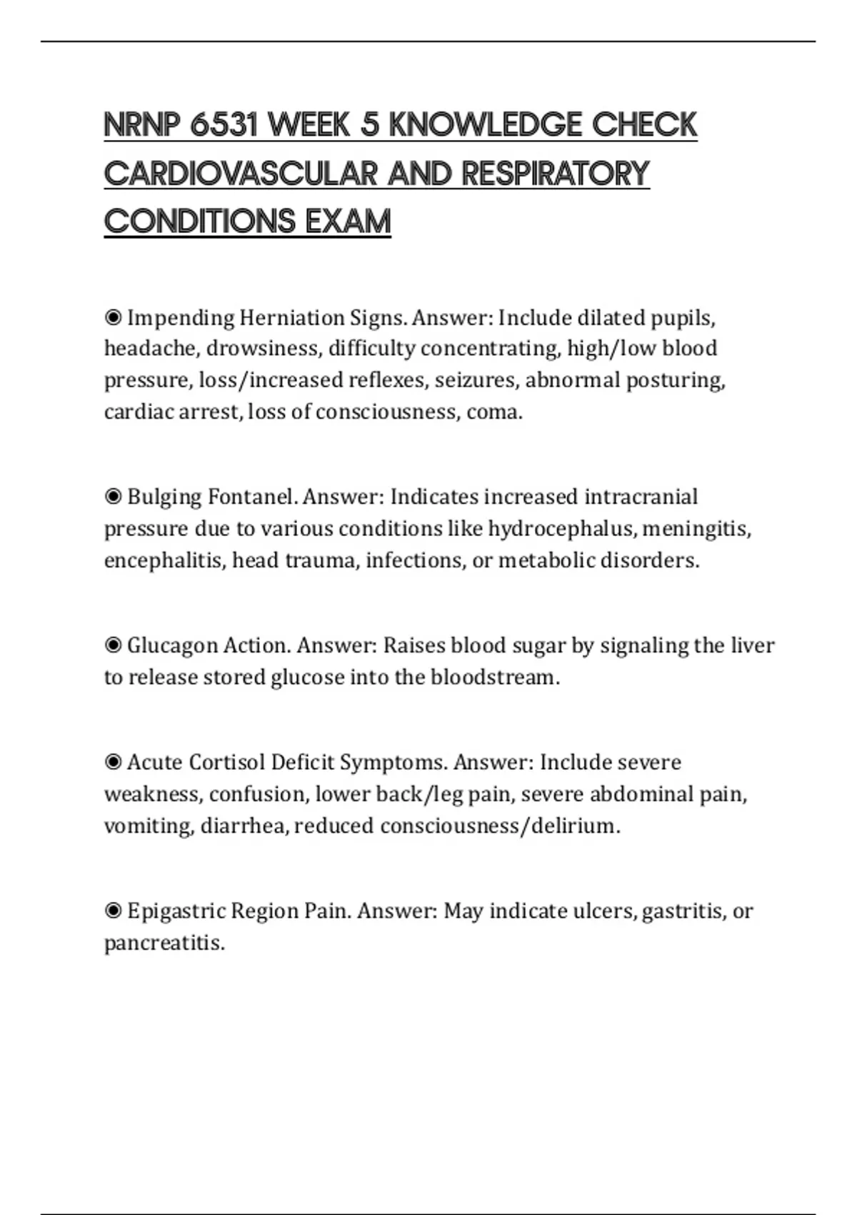 NRNP 6531 WEEK 5 KNOWLEDGE CHECK CARDIOVASCULAR AND RESPIRATORY CONDITIONS EXAM