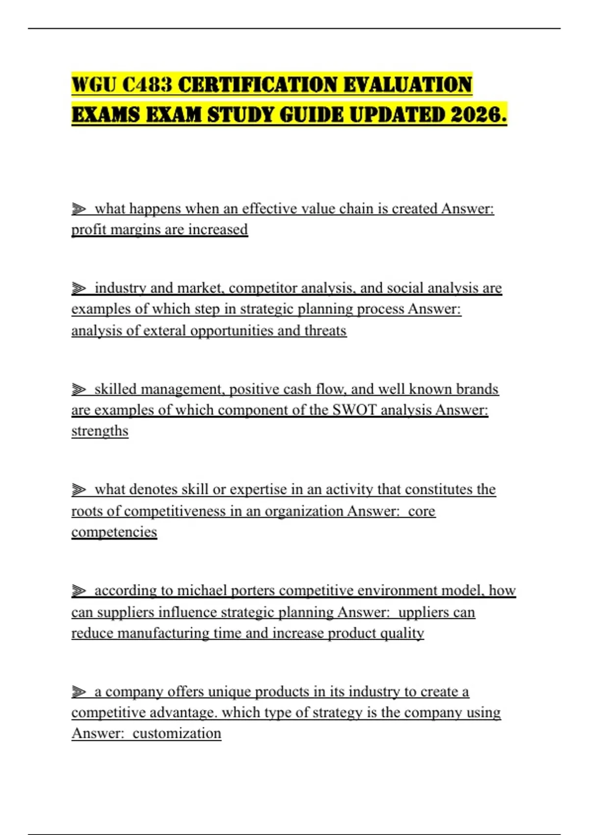 WGU C483 CERTIFICATION EVALUATION EXAMS EXAM STUDY GUIDE UPDATED 2026.