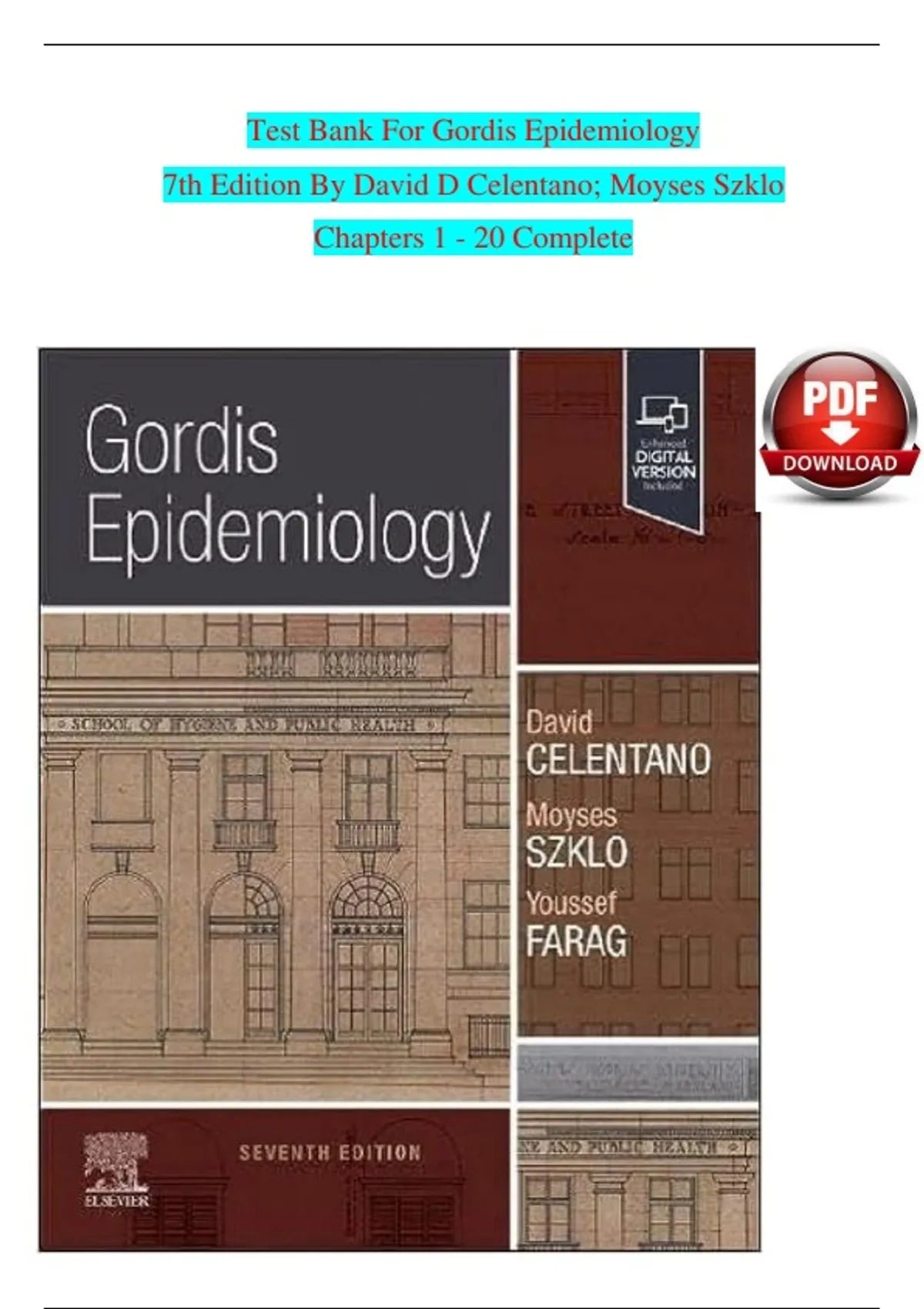 test Bank For Gordis Epidemiology 6th Edition by Authors David D Celentano, Moyses Szklo Included All Chapters 1-20 With Questions And Verified Solutions Latest 2025 Update..