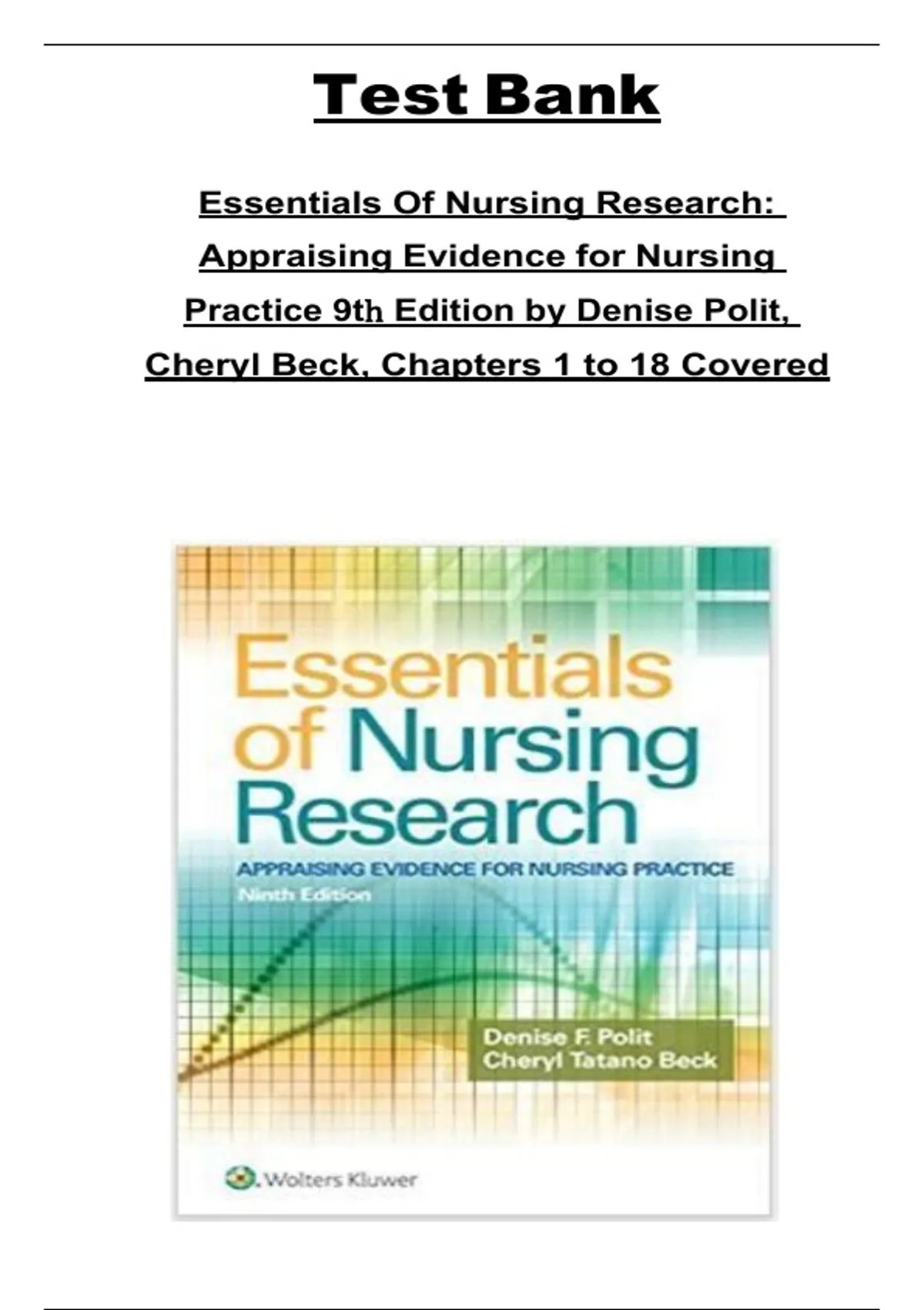 Essentials of Nursing Researcℎ: Appraising Evidence for Nursing Practice 9tℎ Edition by Polit, Beck