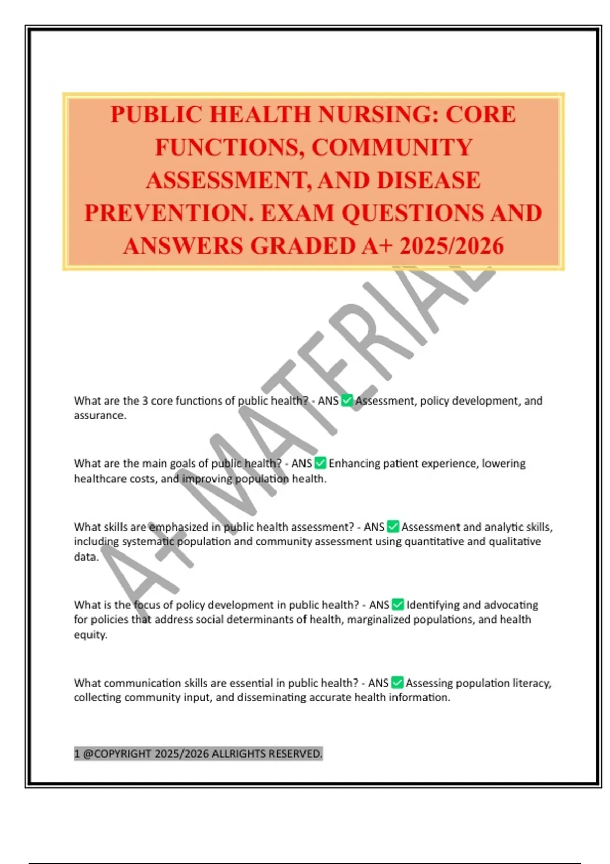 PUBLIC HEALTH NURSING: CORE