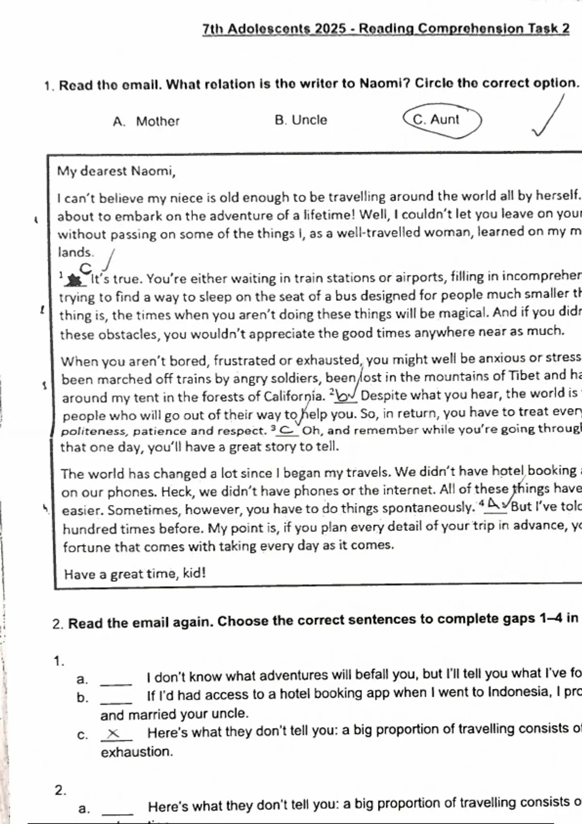 reading comprehension task