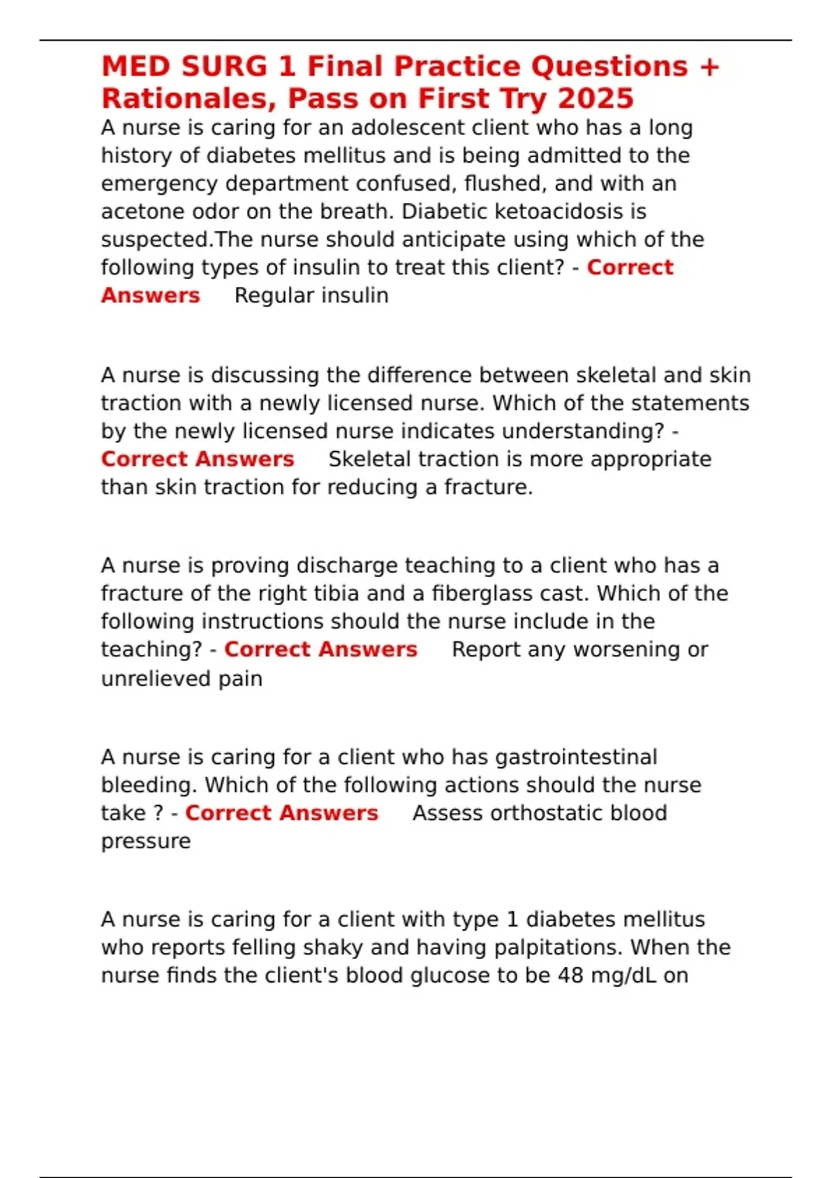 MED SURG 1 Final Practice Questions + Rationales, Pass on First Try 2025