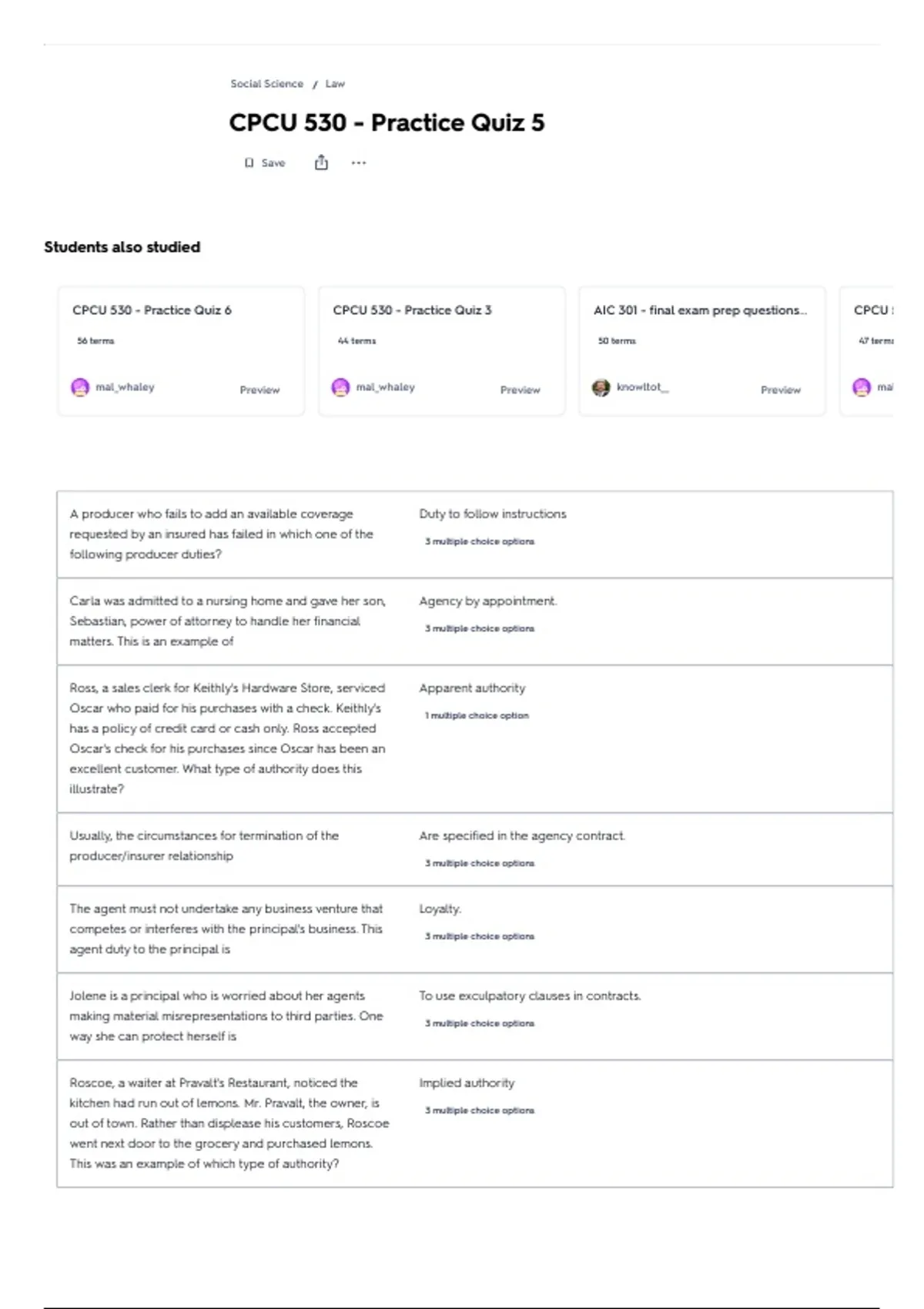 CPCU 530 - Practice Quiz 6 CPCU 530 - Practice Quiz 3 AIC 301 - final exam prep questions... CPCU 5