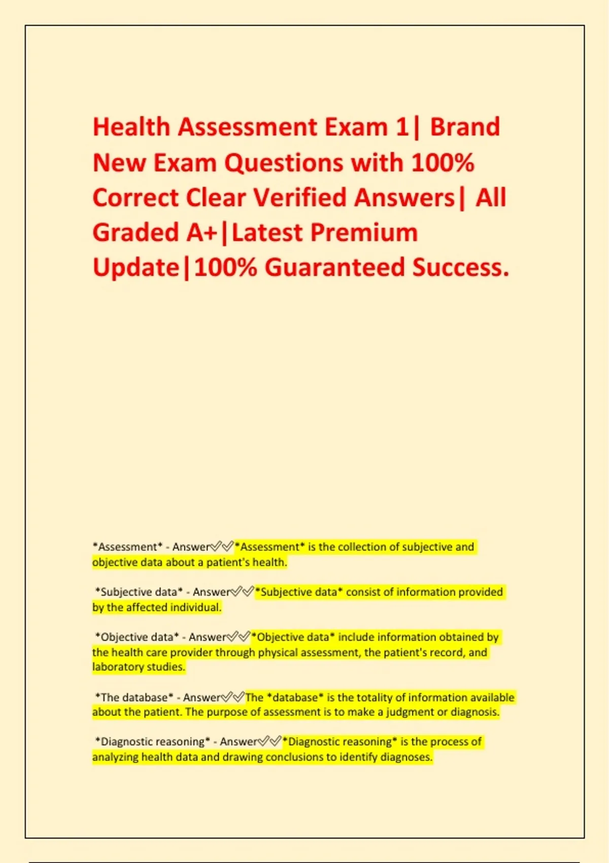 *Assessment* - Answer✅✅*Assessment* is the collection of subjective and