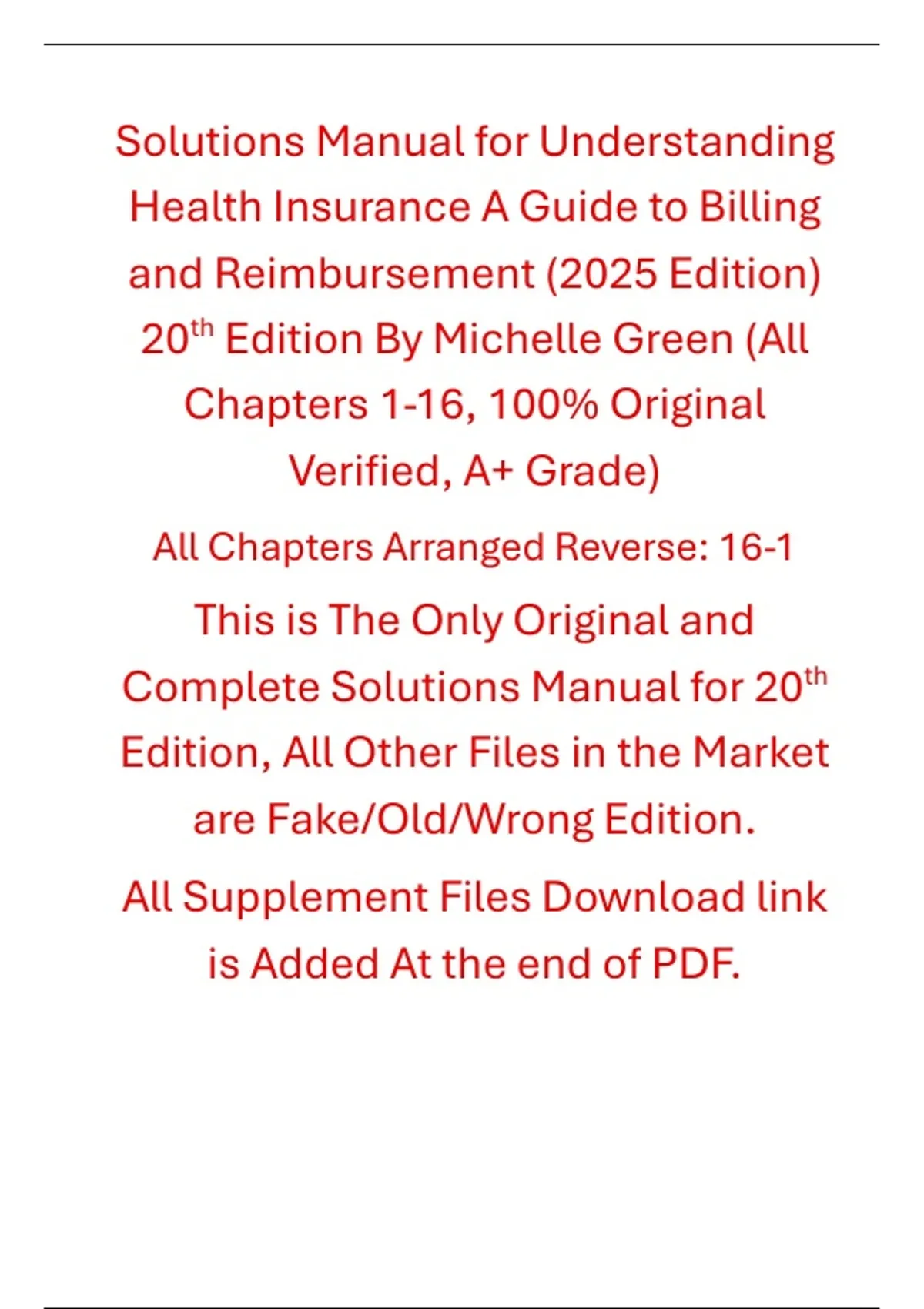 , Solution and Answer Guide: Michelle A. Green, Understanding Health Insurance: A Guide to Billing and
