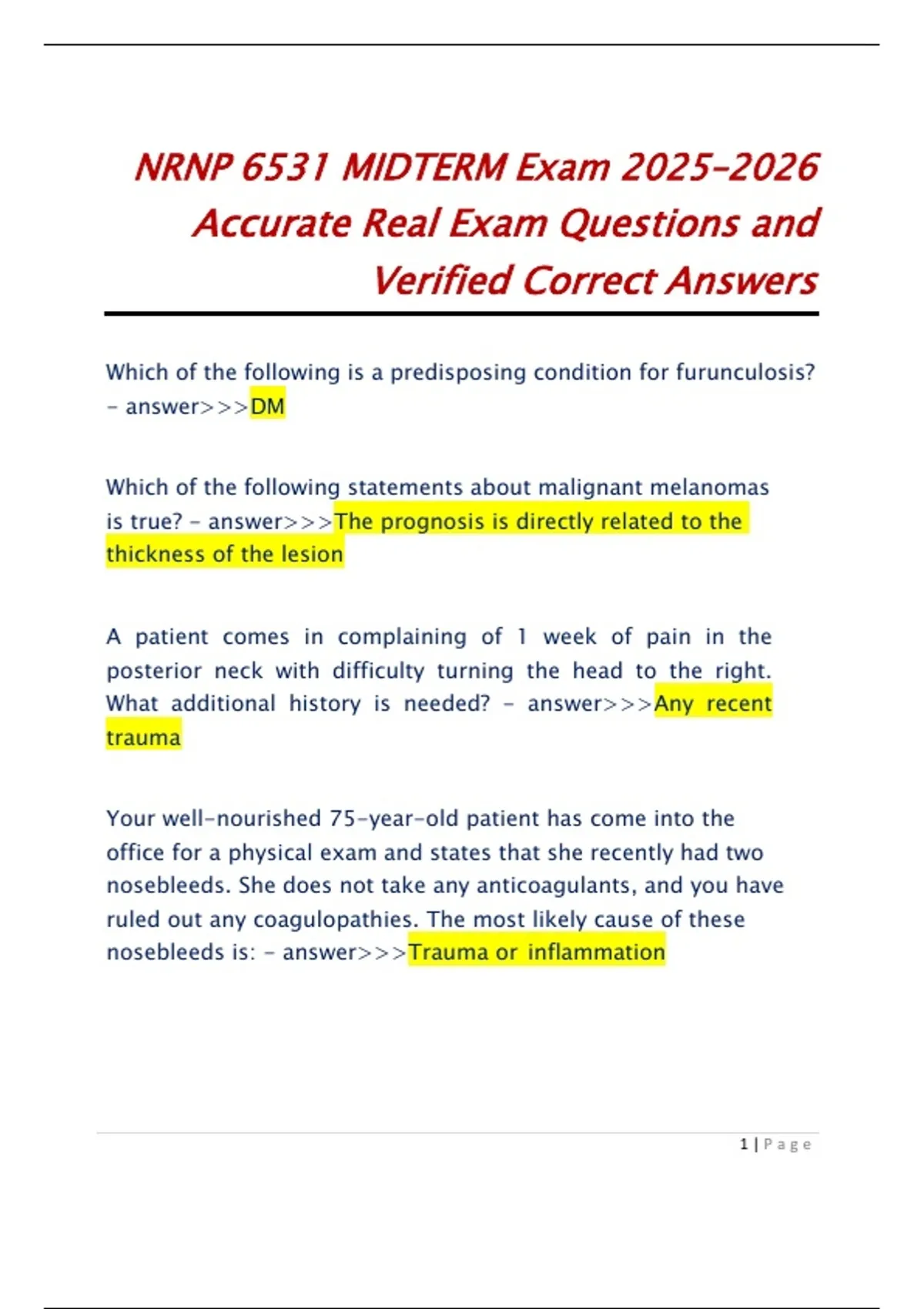 Prepare for the NRNP 6531 Midterm Exam 2025–2026 with accurate real exam questions and verified correct answers. This comprehensive NRNP 6531 exam prep resource helps advanced practice nursing students master assessment, diagnostics, clinical reasoning, and evidence-based care concepts for confident midterm exam success.