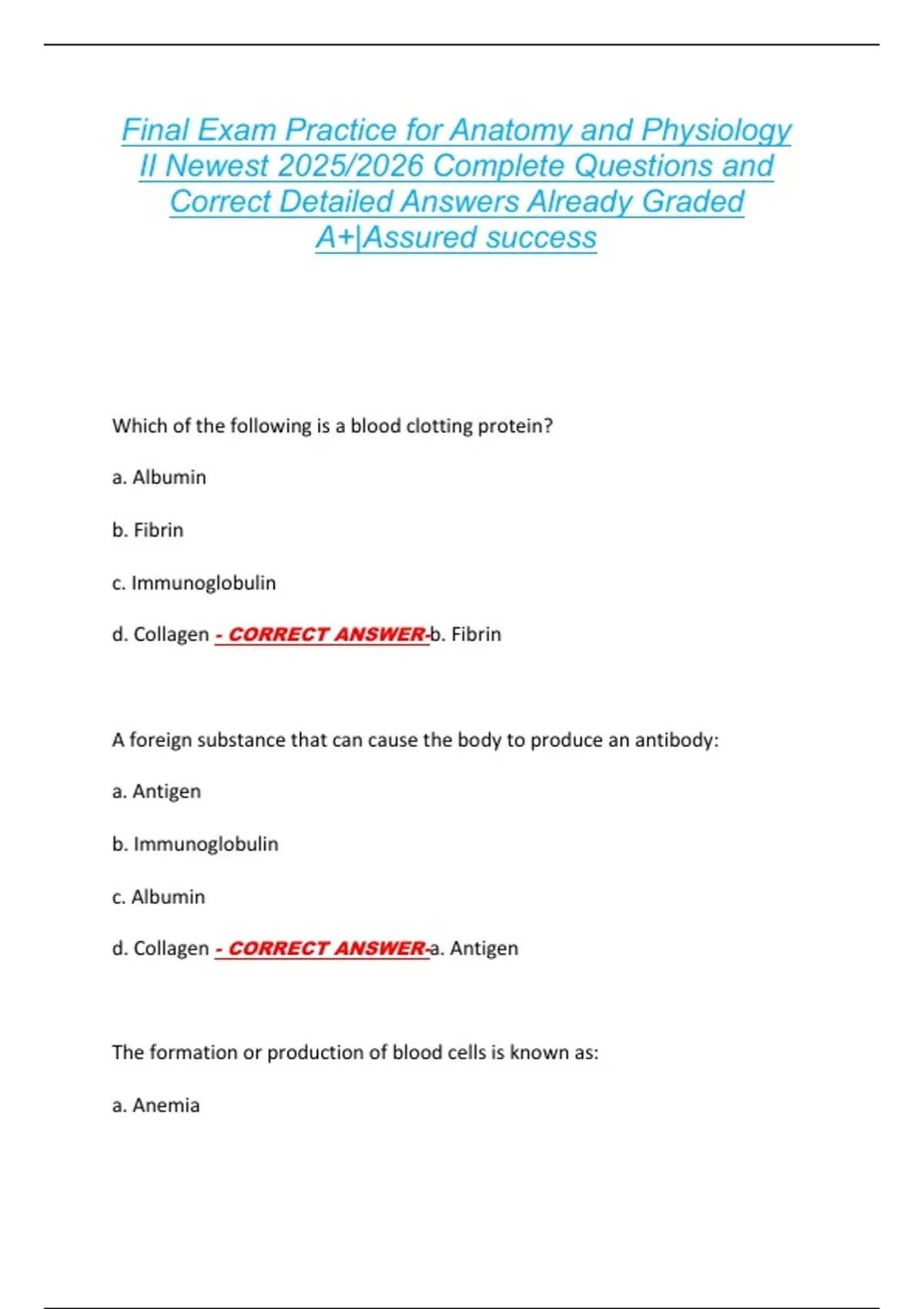 d. Collagen - CORRECT ANSWER-a. Antigen