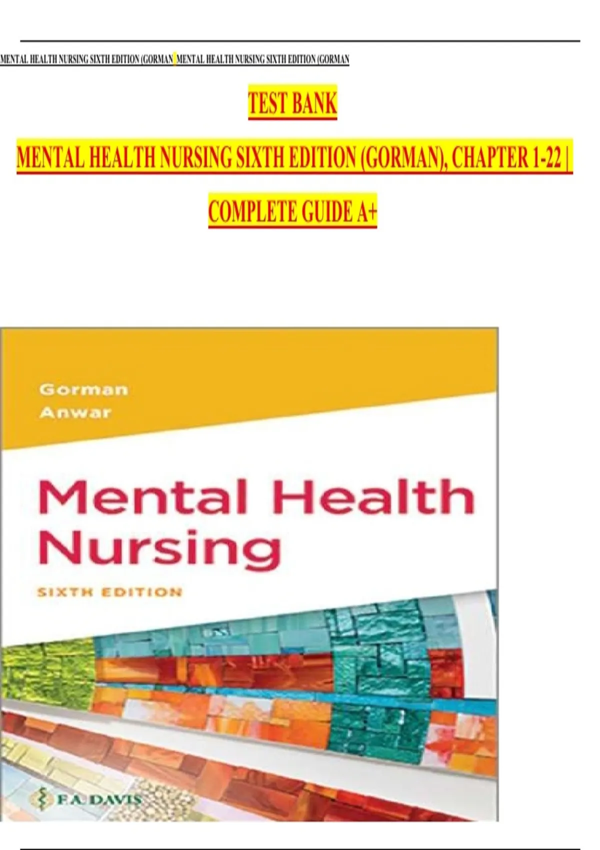 MENTAL HEALTH NURSING SIXTH EDITION (GORMAN), CHAPTER 1-22 |