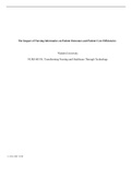 Wk4A The Impact of Nursing Informatics on Patient Outcomes and Patient Care Efficiencies Walden University NURS 6051N, Transforming Nursing and Healthcare Through Technology 13:56:02 GMT -05:00 The Impact of Nursing Informatics on Patient Outcomes and Patient Care Efficiencies Planning and implementing changes to our current practice is often challenging; however, entirely necessary as new treatments and technologies in healthcare are constantly emerging (Nagle et al., 2017). Currently,...