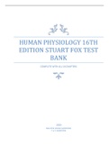 HUMAN PHYSIOLOGY 16TH EDITION STUART FOX TEST BANK