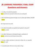 Paramedic JB Learning All Chapter Exams 2026 | Questions with 100% Correct Answers | Verified | Updated 2026 / 2027 JB Learning Paramedic Exams Bundle for the 2026 academic year includes comprehensive practice materials for JB Learning Exam 1 (Chapter 2), EMR JB Learning test questions (Chapters 1–11), pandemic-related exam content, full paramedic chapter exams, and the Paramedic Final Exam. With over 475 exam-style questions and accurate answers, this resource is ideal for EMT, EMR, and Param...
